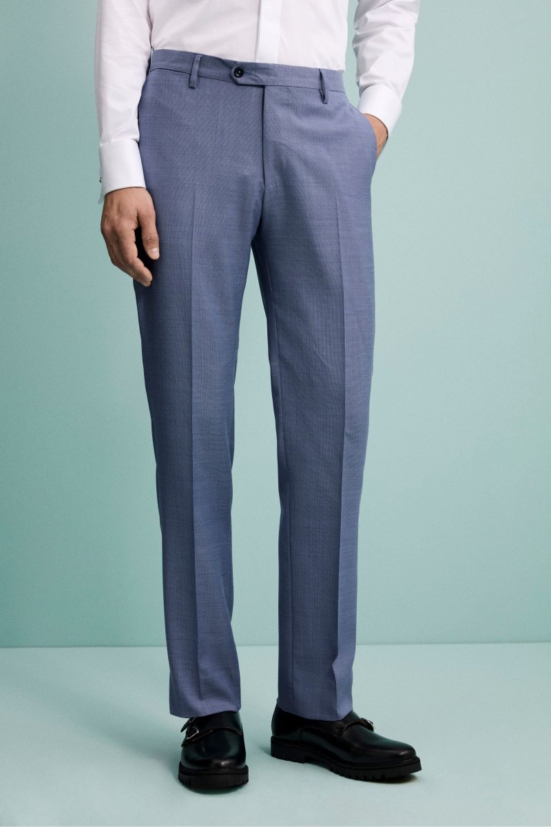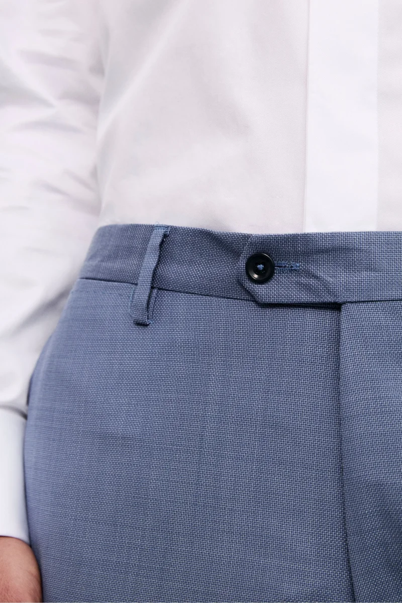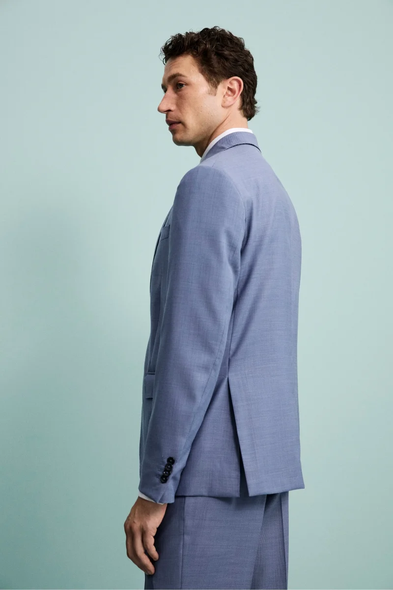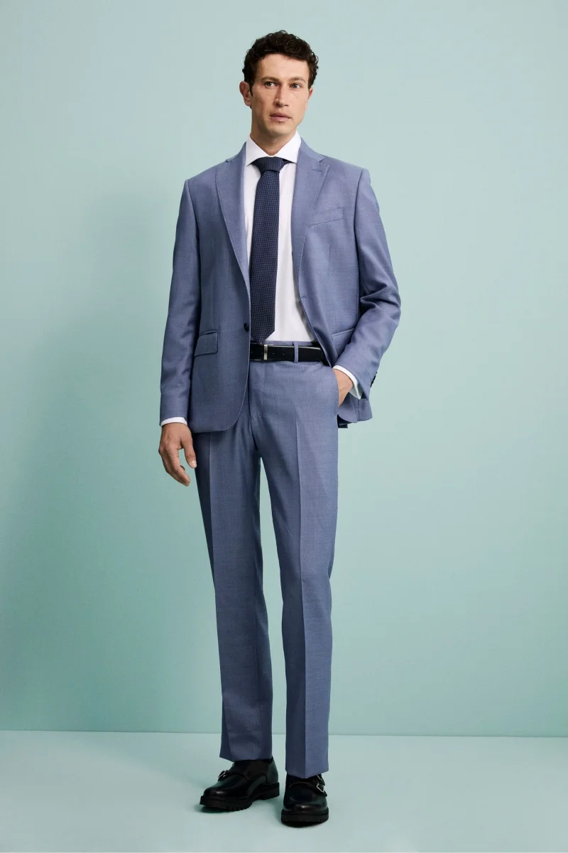 Abito azzurro da uomo regular fit in pura lana vergine, eleganza naturale firmata Cerruti. Realizzato con il prestigioso tessuto in pura lana vergine del Lanificio F.lli Cerruti dal 1881, questo abito da uomo azzurro รจ un perfetto equilibrio tra eleganza classica e stile contemporaneo. La giacca monopetto con revers classico, chiusura a due bottoni, tasche a filetto con pattina e doppio spacco posteriore, esalta una vestibilitร regolare pensata per garantire comfort e raffinatezza in ogni occasione. La tonalitร azzurra, luminosa e sofisticata, aggiunge carattere al guardaroba maschile, rendendo questo vestito elegante da uomo ideale sia per lโufficio che per cerimonie ed eventi formali. Un capo versatile e distintivo, immancabile tra i migliori completi uomo per la stagione primavera-estate. Drop 6 โ Made in Italy. Il modello รจ alto 189 cm e indossa la taglia 50.