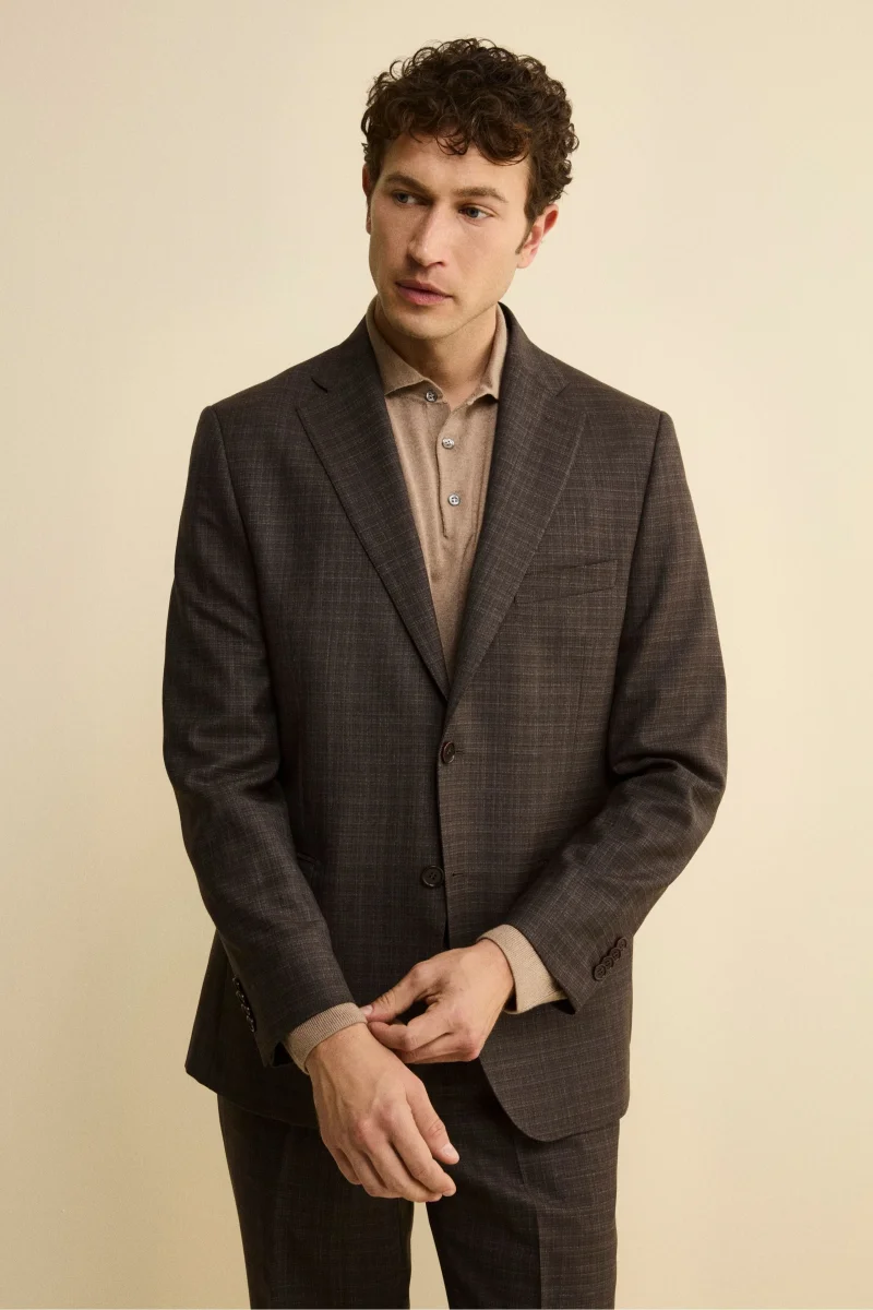 Abito Check Monopetto Comfort Fit in Lana Vergine – FANT. MARRONE