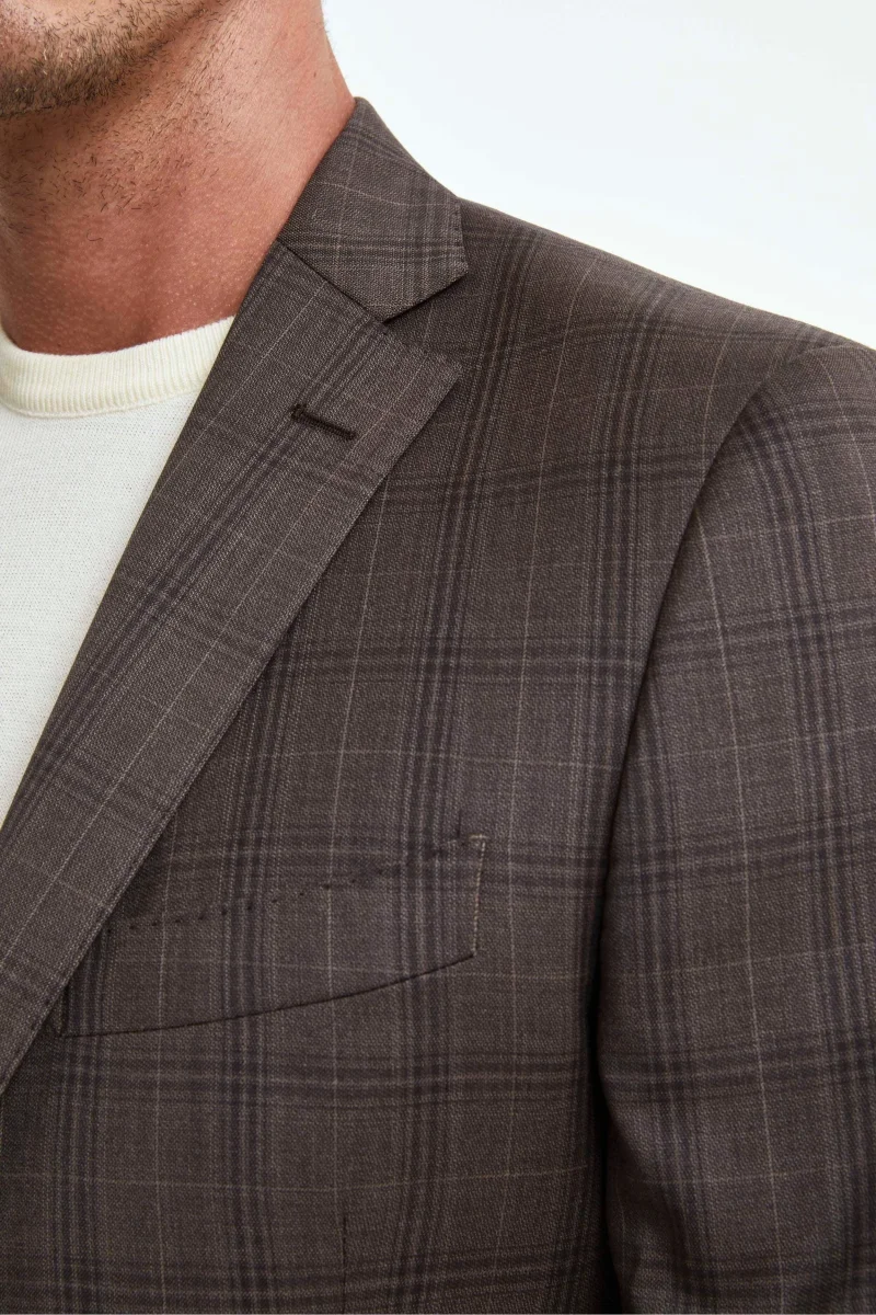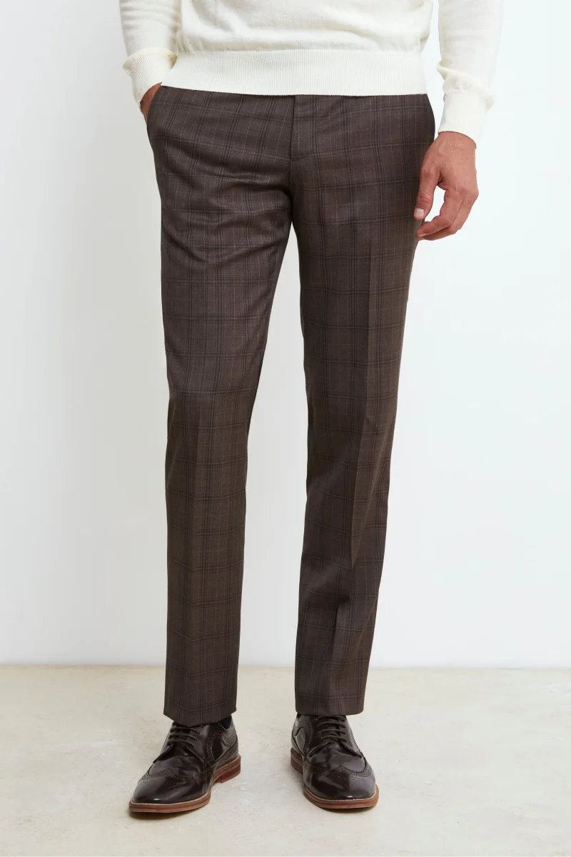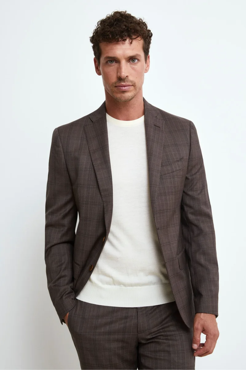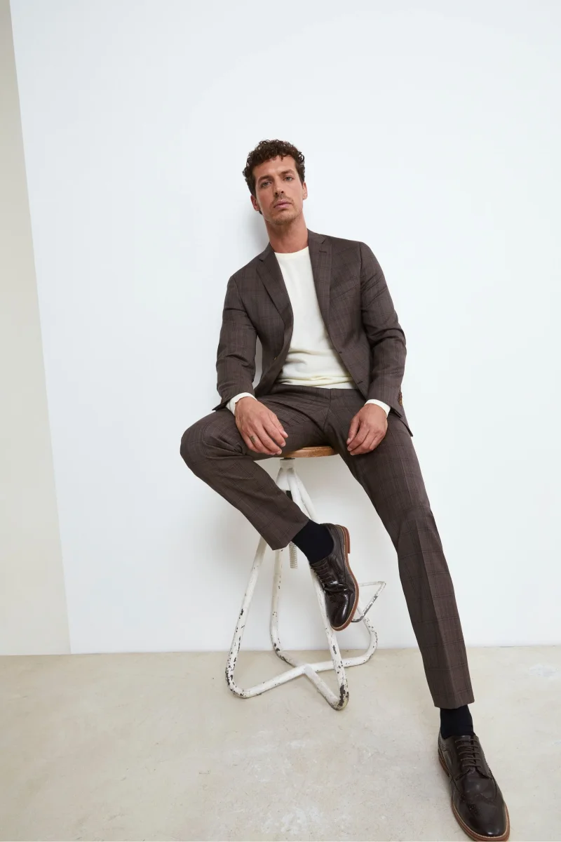 Abito marrone quadri uomo, un capo che si distingue per il suo stile che abbraccia presente e passato. Lโabito, realizzato al 100% in Lana vergine, รจ un must-have di ogni guardaroba. La giacca รจ dotata di tasche frontali con pattina, doppio spacco posteriore che assicura libertร di movimento, e revers classico per un tocco di classe in piรน. Il taschino sul petto conferisce ulteriore stile. Il taglio drop 8, con vestibilitร slim, mette in risalto una silhouette moderna e ben definita, perfetta per ogni occasione. Lโabito รจ completamente foderato, ideale da indossare in qualsiasi stagione, mantenendo sempre un comfort eccezionale. Lโartigianalitร Made in Italy sottolinea la cura dei dettagli e la scelta di materiali pregiati. Ideale per lโuomo che ama unโeleganza senza tempo, questo abito monopetto in lana vergine rappresenta una scelta di classe per chi vuole distinguersi. Il modello, alto 189 cm, veste la taglia 50.