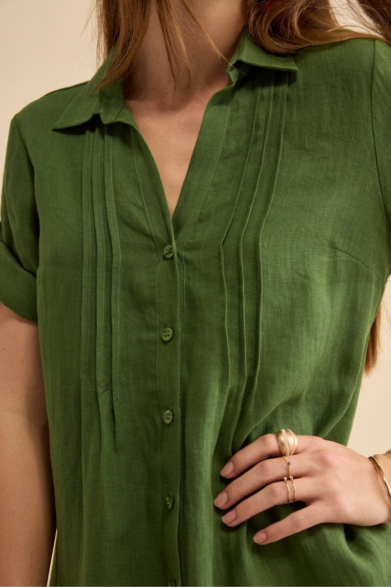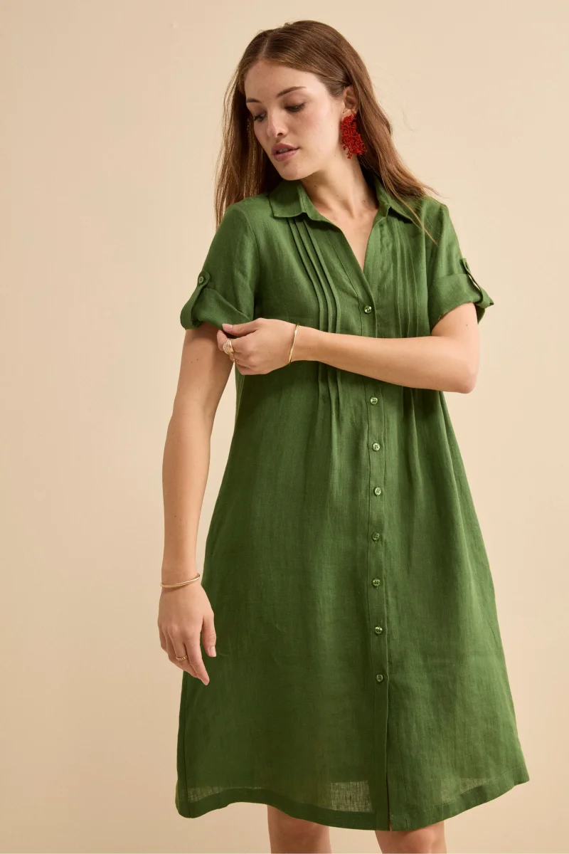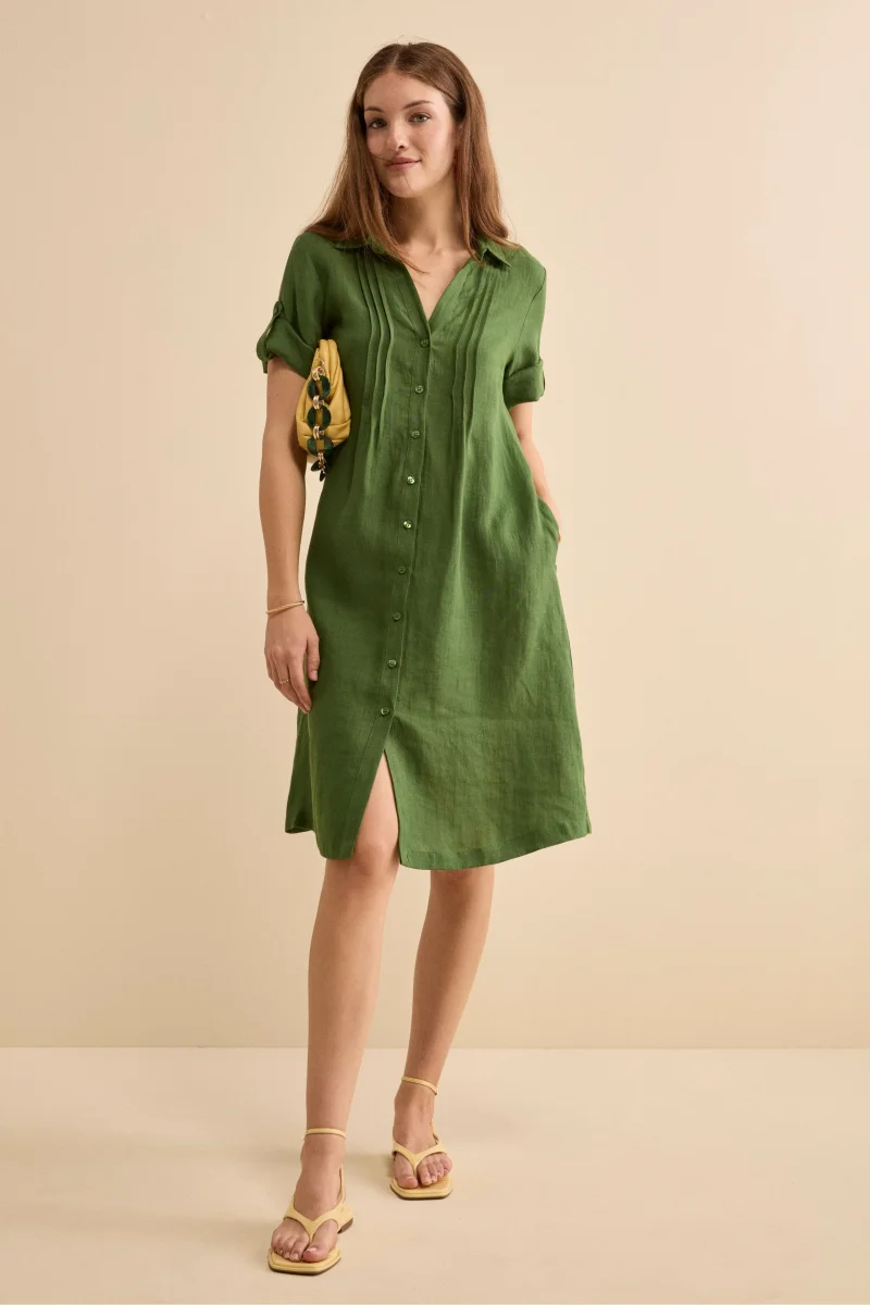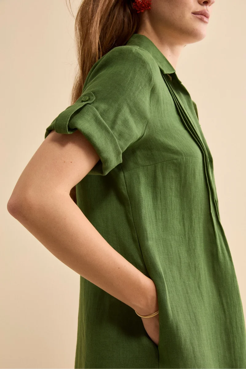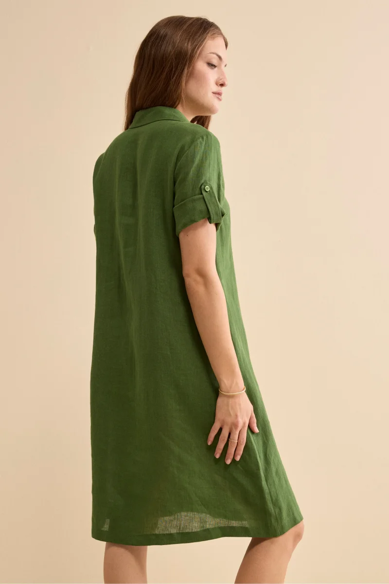 Abito Chemisier in Lino con Manica Corta – VERDE