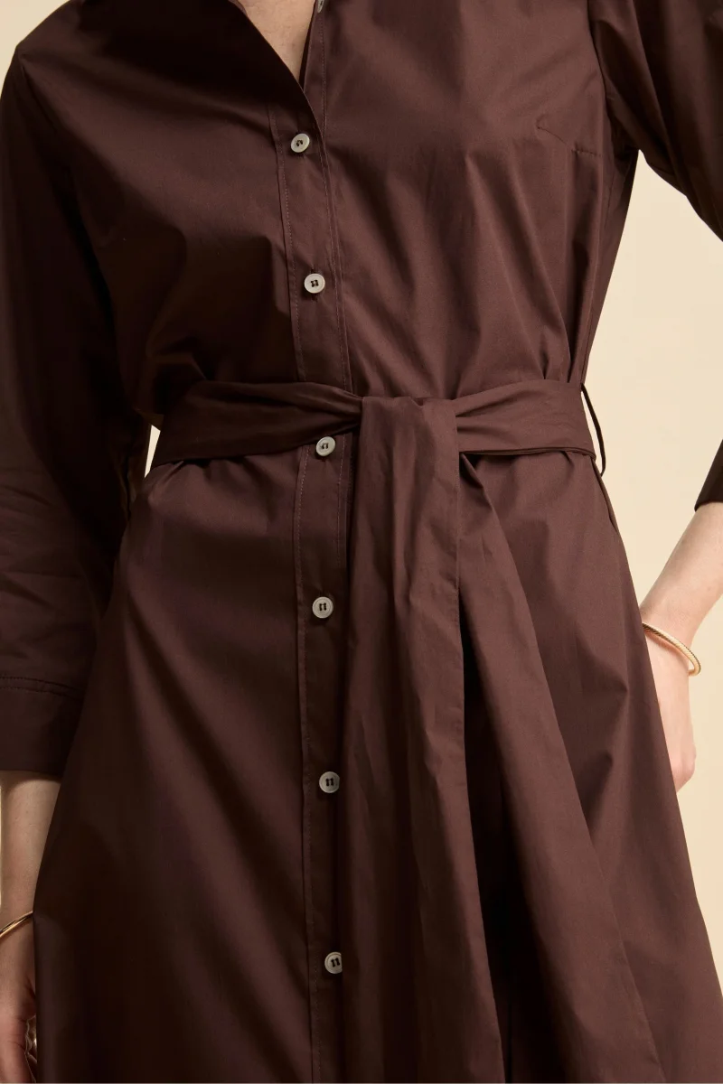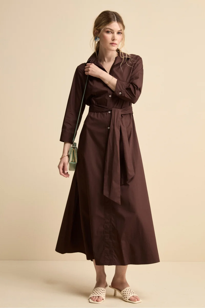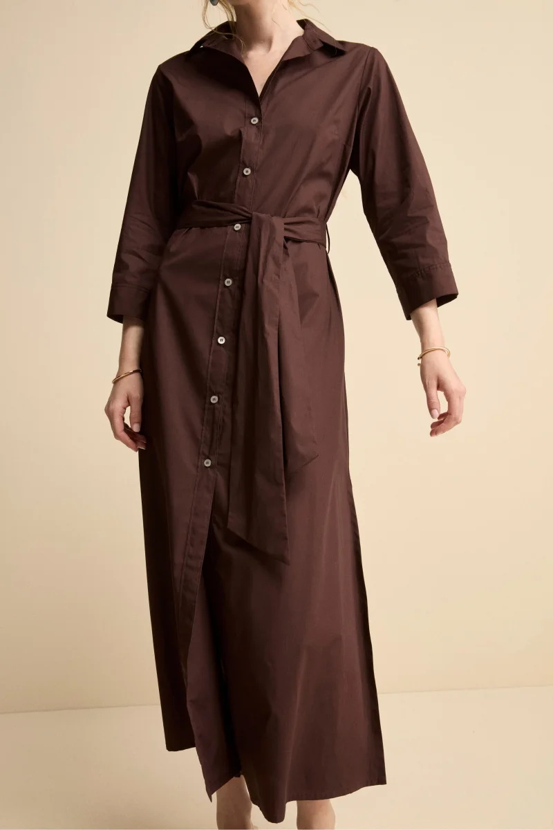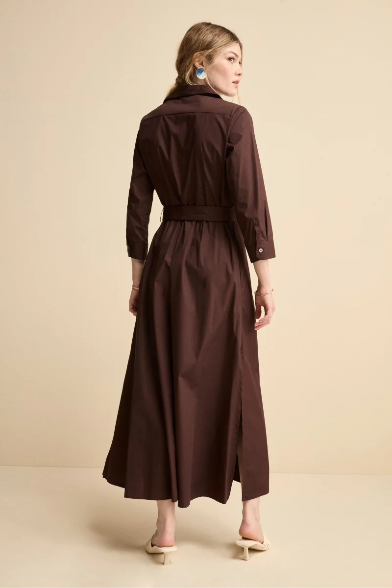 Abito Chemisier Lungo in Popeline con Cintura – MARRONE