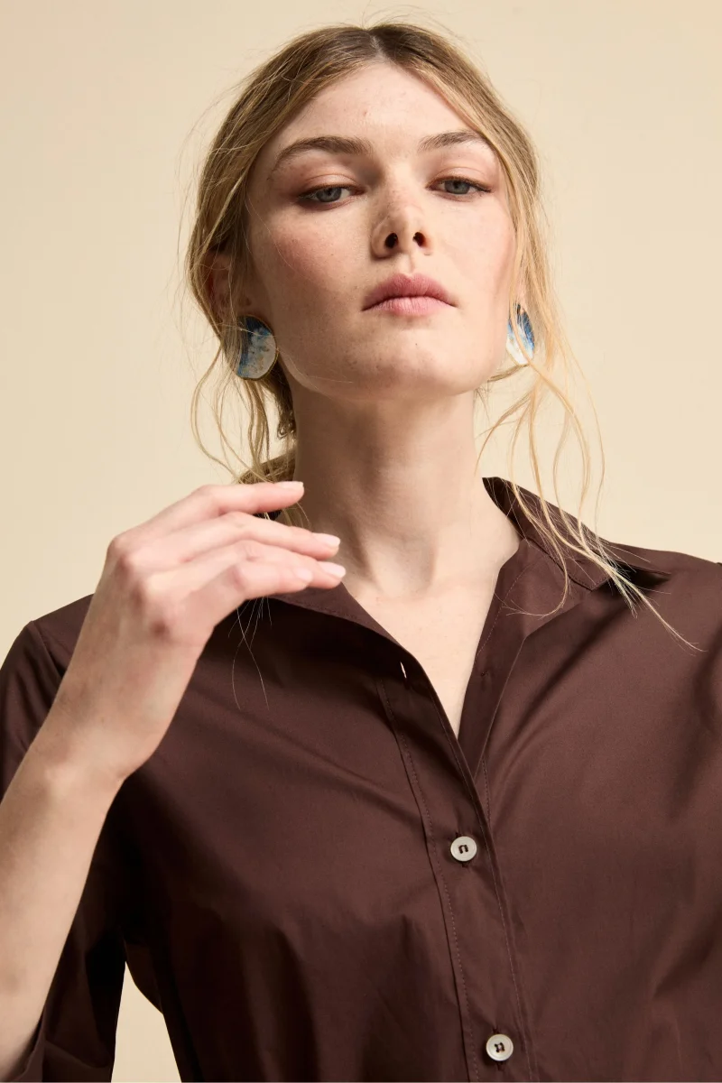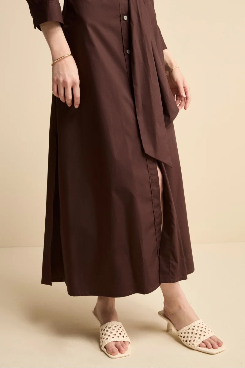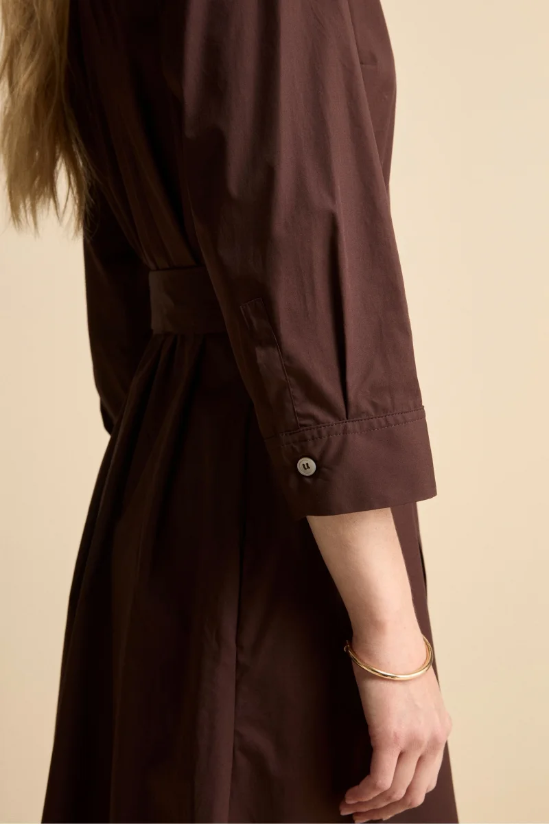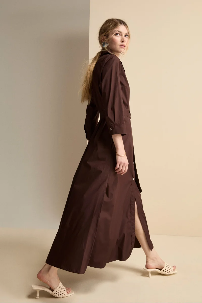 Abito Chemisier Lungo in Popeline con Cintura – MARRONE