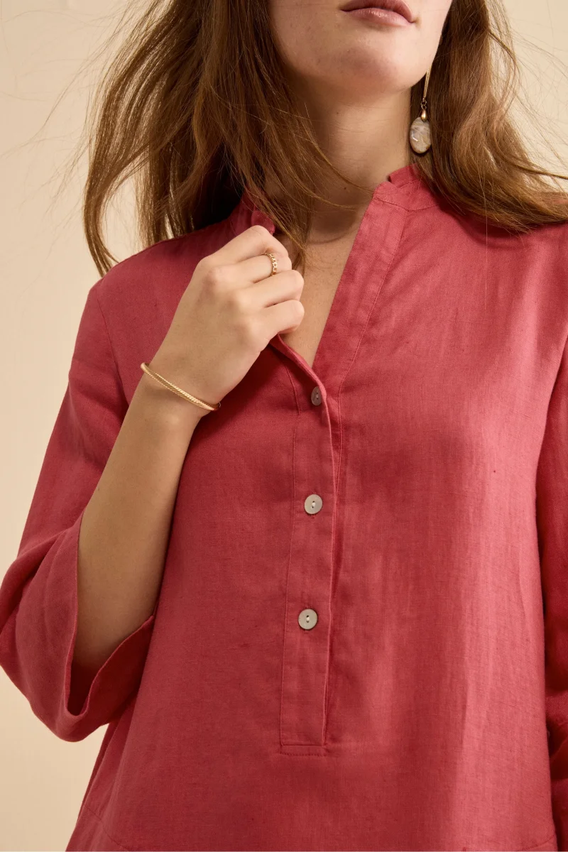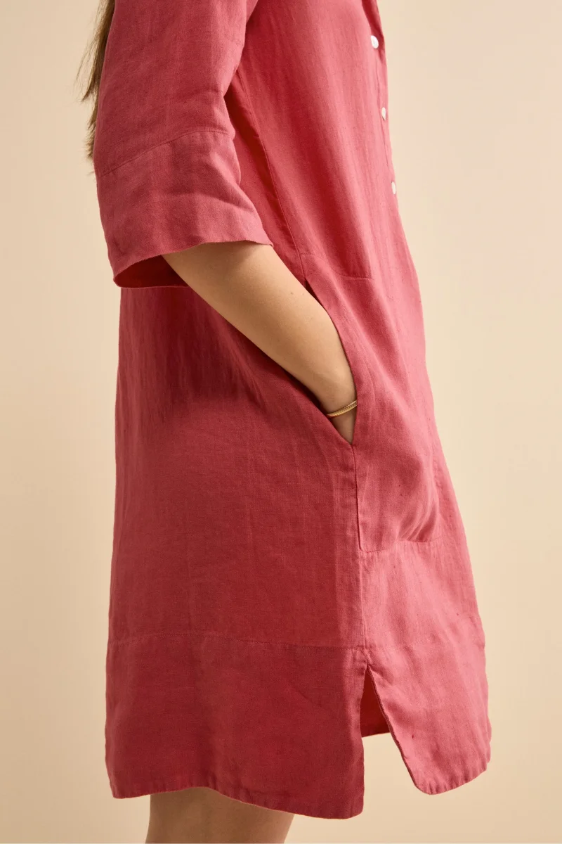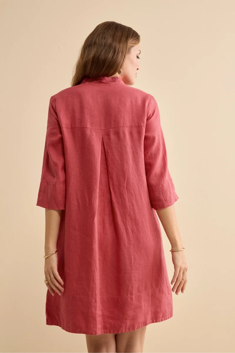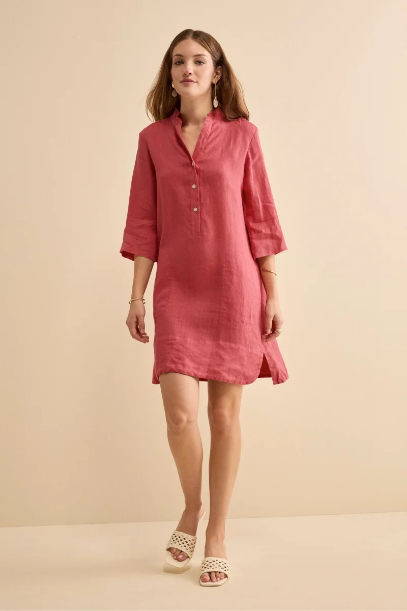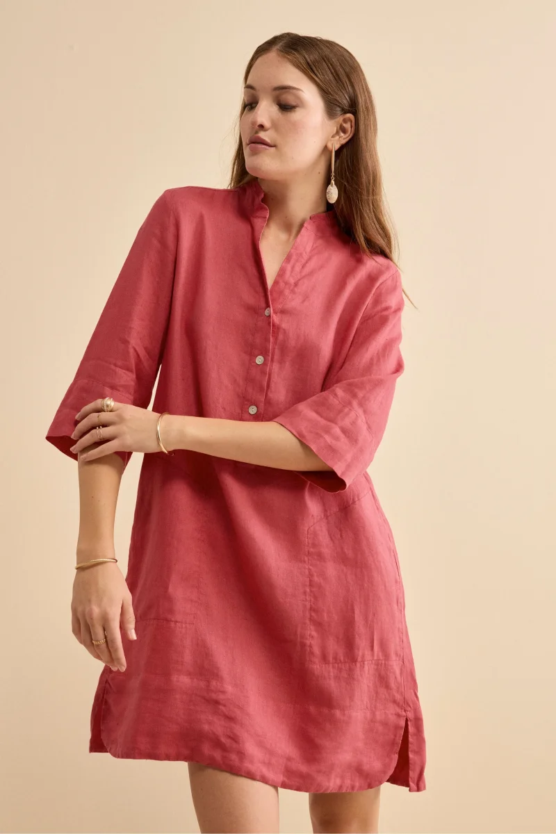 Abito Chemisier Midi in Lino con Collo Coreana – CORALLO