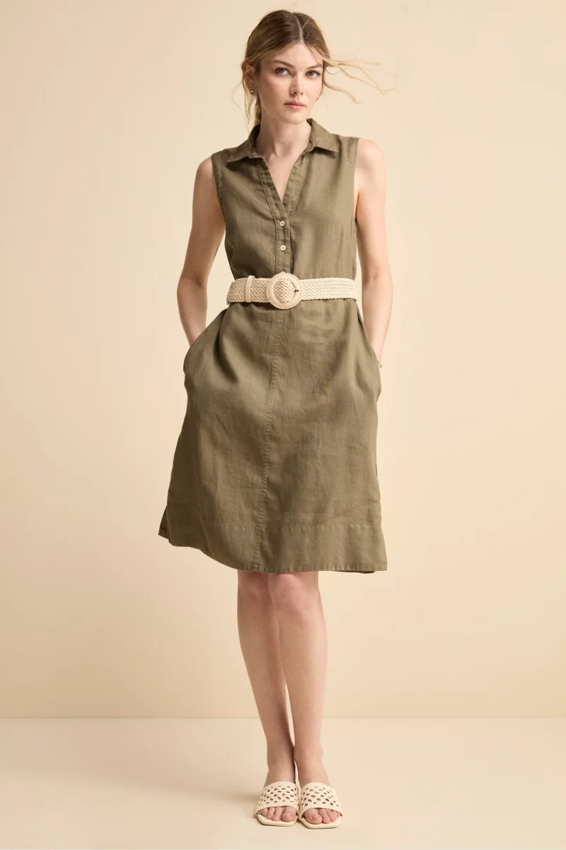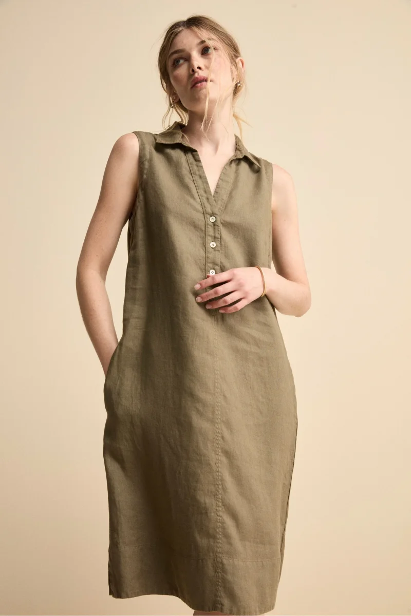 Abito Chemisier Smanicato in Lino – VERDE MILITARE