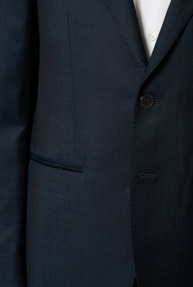 Abito classico con rever a lancia e 2 bottoni in madreperla, tessuto lana super fine micro fantasia blu petrolio