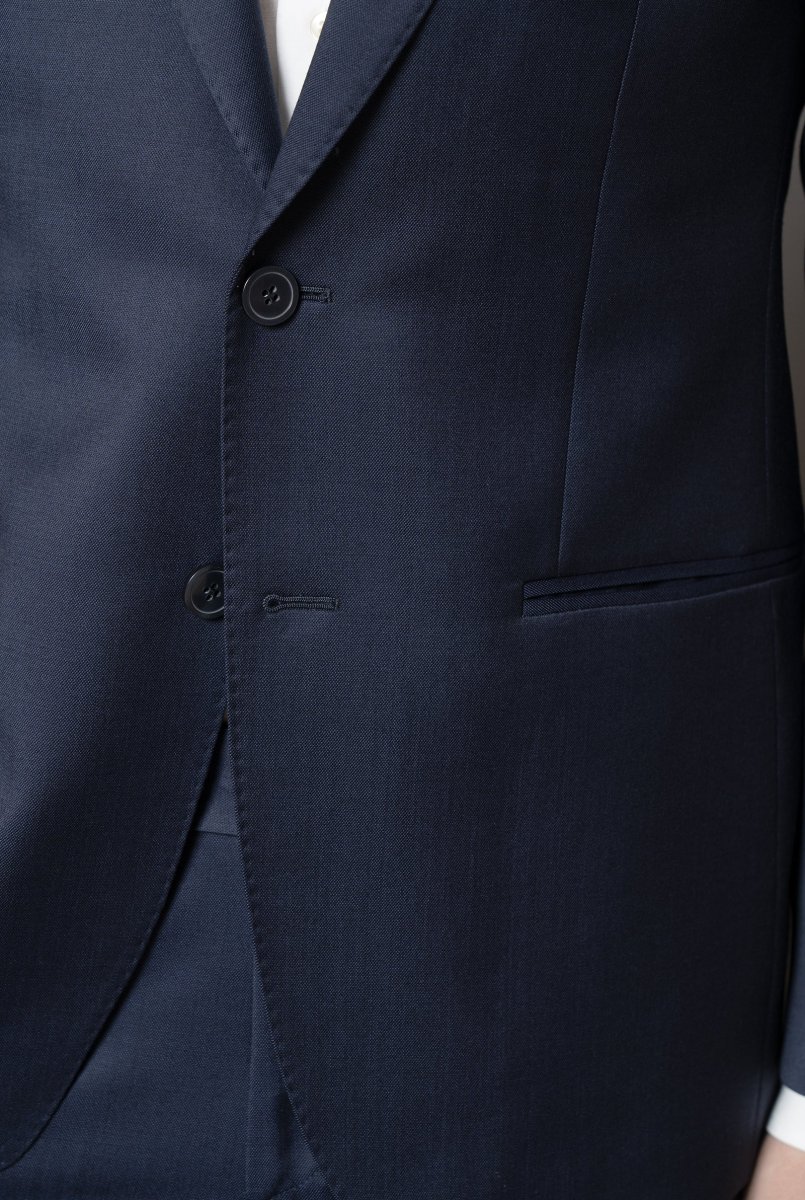 Abito classico con rever a lancia e 2 bottoni in madreperla, tessuto lana super fine micro fantasia blu