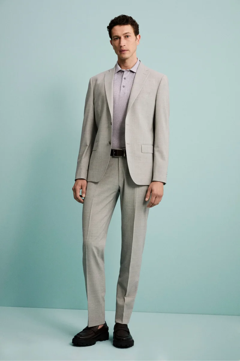 Abito da uomo monopetto in lana vergine, proposto in una tonalitร raffinata che dona al look uno stile fresco e contemporaneo. La giacca presenta revers classico, chiusura frontale a due bottoni, tasche con pattina e doppio spacco posteriore per una vestibilitร slim e confortevole. Completamente foderata, mantiene una linea impeccabile in ogni occasione. Il pantalone, […]