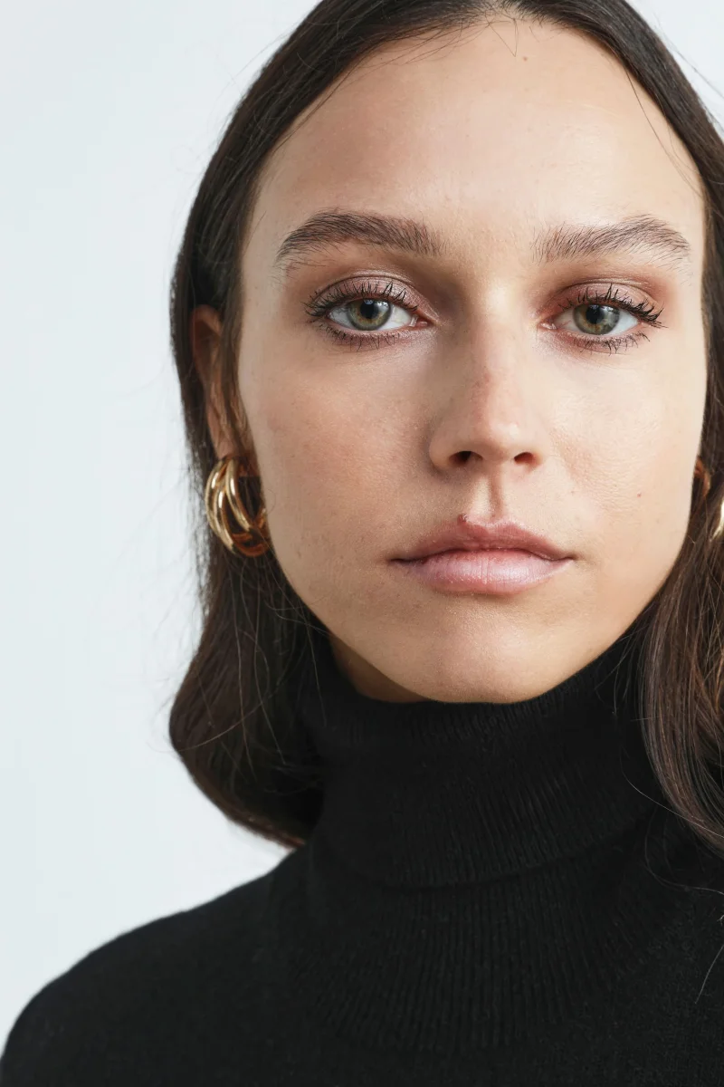 Abito dolcevita da donna realizzato in lana vergine e cashmere. Extra fine e caldo, รจ lโabito perfetto per un look aperitivo invernale immancabile per le vacanze in montagna. Vestibilitร aderente e made in Italy. La modella รจ alta 178 cm e indossa la taglia 40.