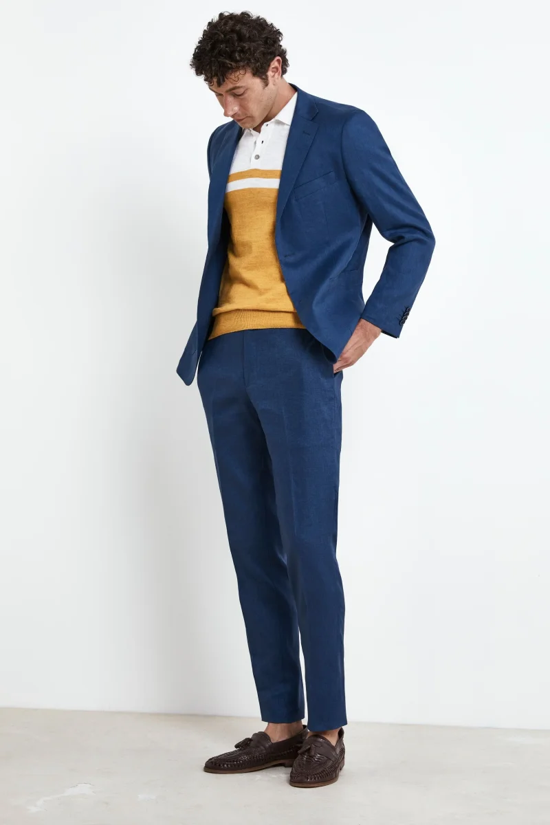 Abito 100% Lino da uomo composto da giacca con revers classico e pantaloni con comode tasche america e chiusura 1 bottone frontale. Lasciati avvolgere dallโeleganza senza tempo di questo raffinato abito in puro lino. Questo capo รจ la scelta ideale per occasioni formali come matrimoni, eventi aziendali o appuntamenti di lavoro, quando desideri distinguerti con unโallure di classe e raffinatezza. Ma รจ anche lโalleato perfetto per il tuo tempo libero, da indossare con una camicia in Lino Il Lanificio per un look rilassato e mai fuori luogo. Vestibilitร comoda. Drop 4. Il modello รจ alto 189 cm e indossa la taglia 50.