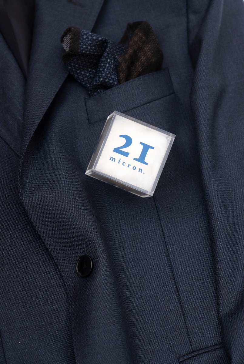 Giacca due bottoni, rever classico, doppio spacco sul retro, taschino per pochette, completamente foderato.