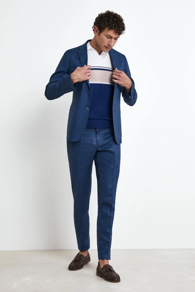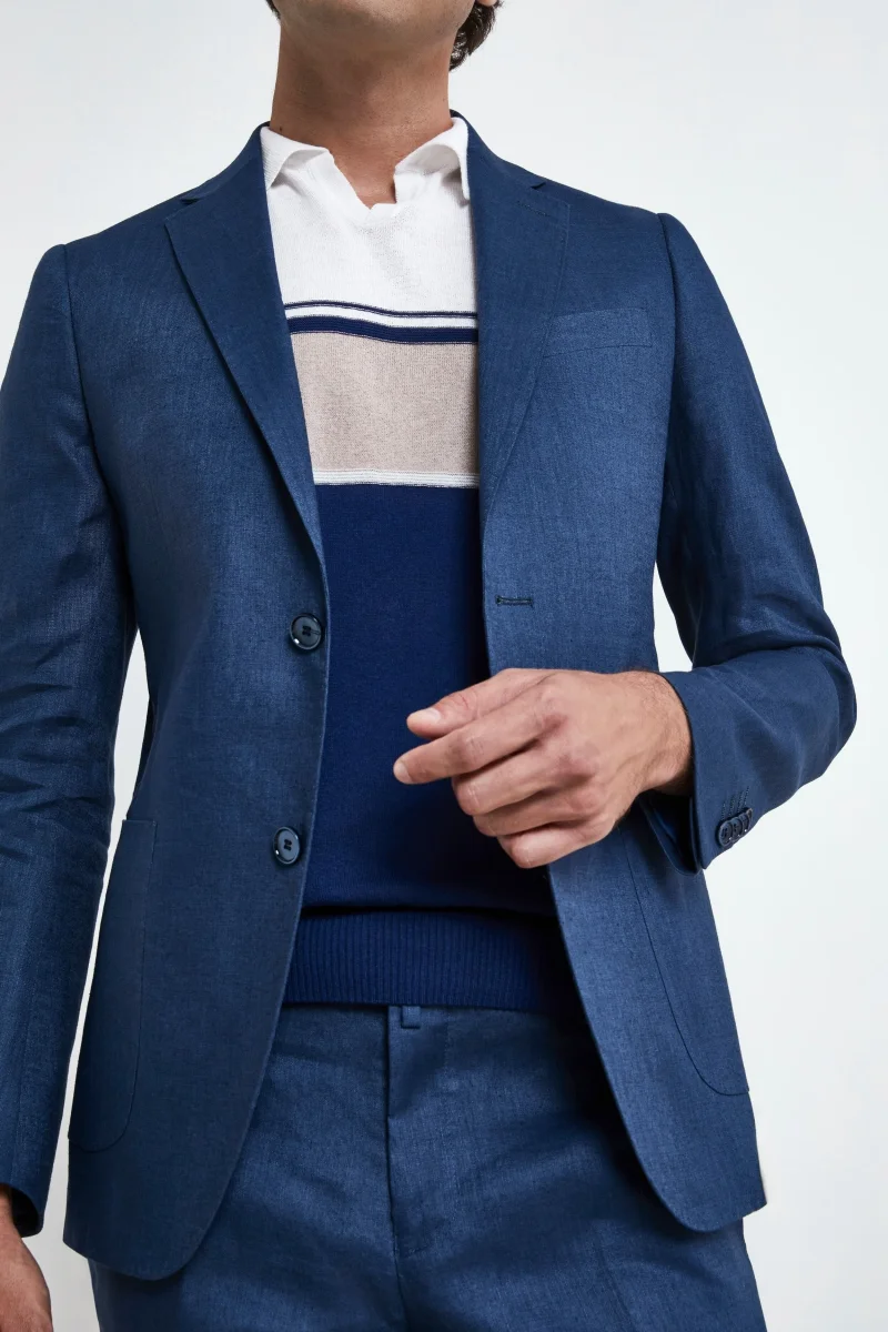 Abito 100% Lino da uomo composto da giacca con rever classico e pantaloni con comode tasche america e chiusura 1 bottone frontale. Lasciati avvolgere dallโeleganza senza tempo di questo raffinato abito in puro lino. Questo capo รจ la scelta ideale per occasioni formali come matrimoni, eventi aziendali o appuntamenti di lavoro, quando desideri distinguerti con unโallure di classe e raffinatezza. Ma รจ anche lโalleato perfetto per il tuo tempo libero, da indossare con una camicia in Lino Il Lanificio per un look rilassato e mai fuori luogo. Vestibilitร slim. Drop 8. Il modello รจ alto 189 cm e indossa la taglia 50.