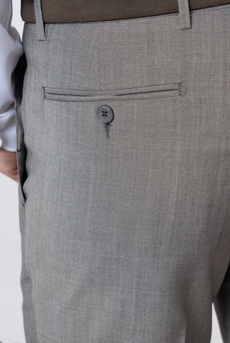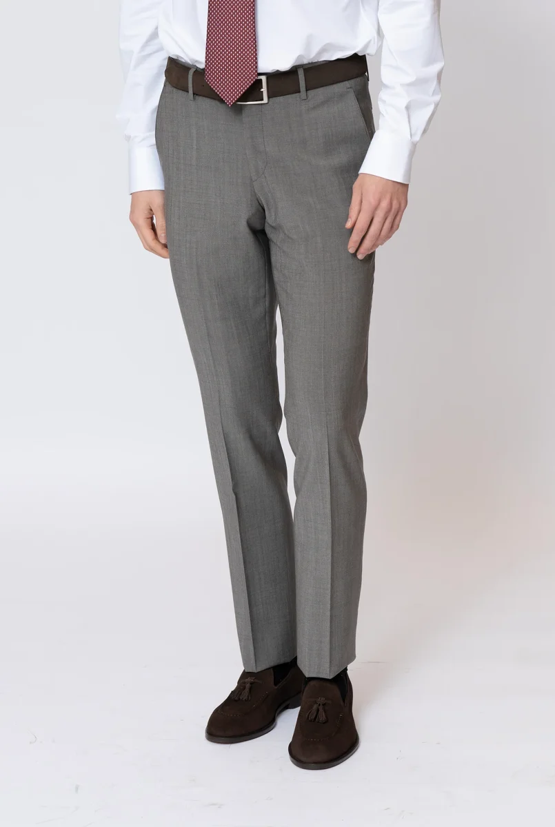 Pantaloni vestibilitร slim, due tasche a filetto sul retro, due tasche alla francese sul fronte, possibilitร di riprendere il fondo con risvolto o liscio.