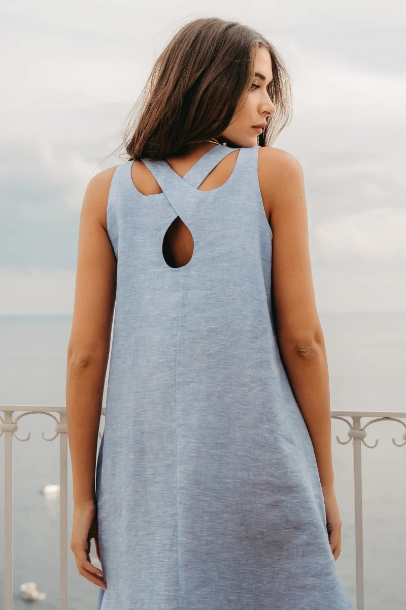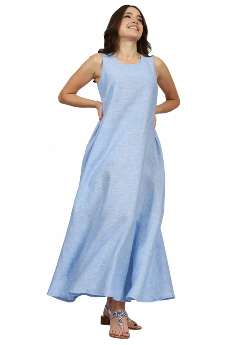 Abito Positano Marina Lungo in Puro Lino Celeste