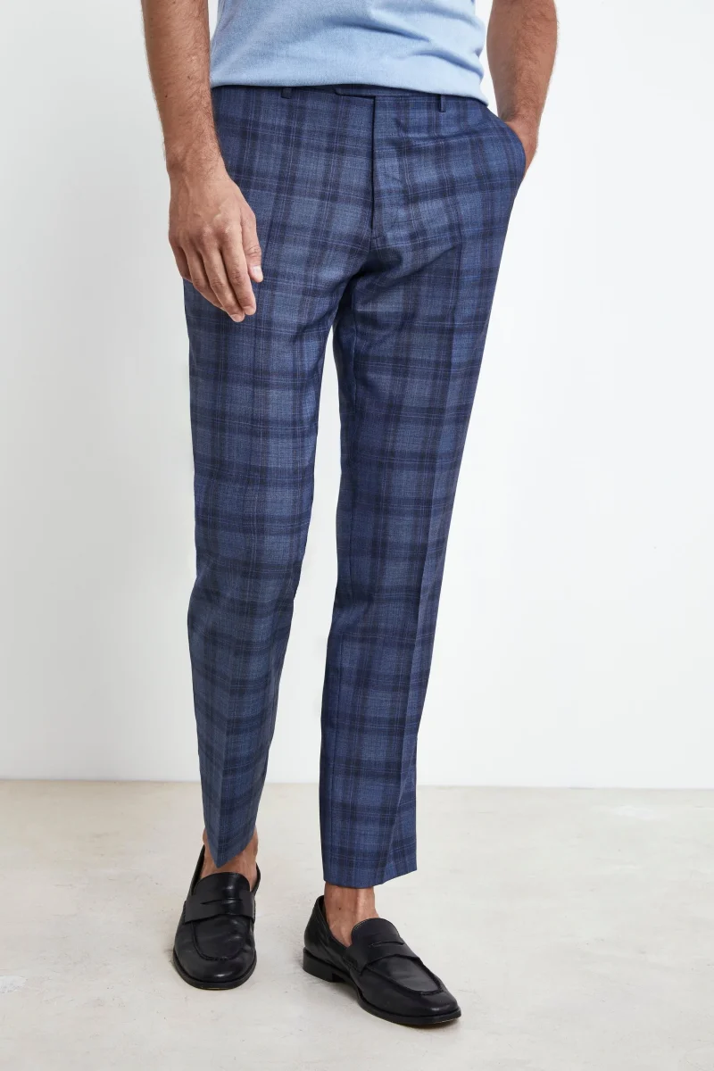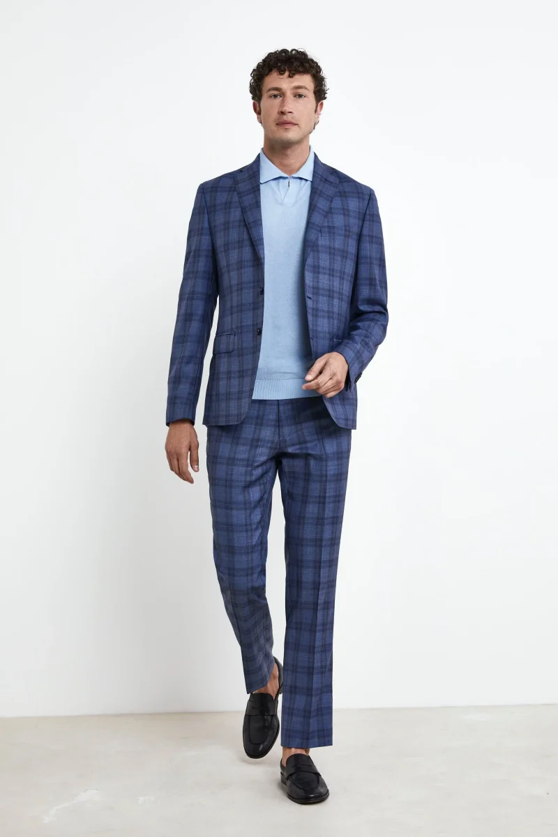 Rinnova il tuo guardaroba classico con questo abito blu avio a quadri da uomo in lana vergine. Questo straordinario capo, dalla giacca con revers classico e tasche con pattina e taschino per pochette, offre una vestibilitร slim impeccabile per un look che unisce lo stile moderno e classico. La lana vergine di alta qualitร garantisce comfort e calore mentre il design a quadri aggiunge un tocco distinto e raffinato. Questo capo รจ il perfetto alleato per le tue occasioni speciali, dalle riunioni di lavoro ai matrimoni. Vestibilitร slim, drop 8 e made in Italy. Il modello รจ alto 189 cm e indossa la taglia 50.