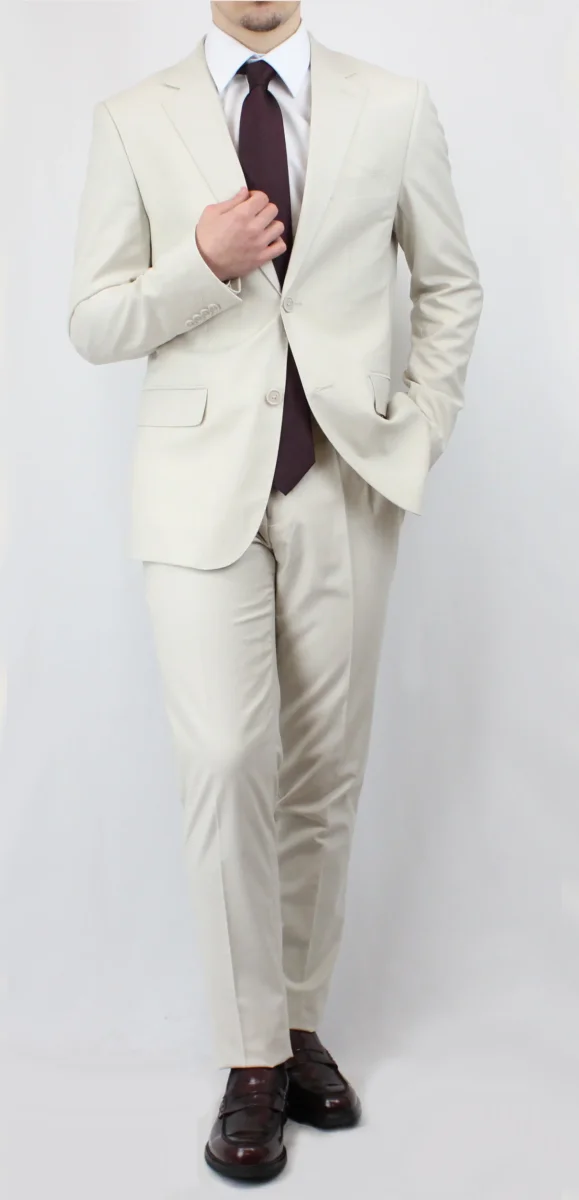 Abito cerimonia un bottone, rever a lancia in lana finissima lilla, pantalone con fibbia di regolazione laterale