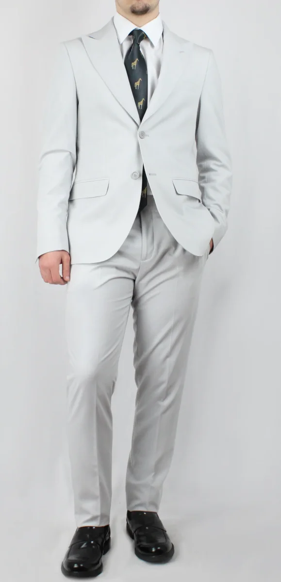 L’abito Tasmania รจ realizzato con un tessuto leggero di alta qualitร effetto Tasmania. Con un reverse a lancia e una lavorazione sartoriale napoletana, questo capo dona un’immagine sofisticata e di classe. Inoltre, il colore perla lo rende versatile e perfetto per ogni occasione.