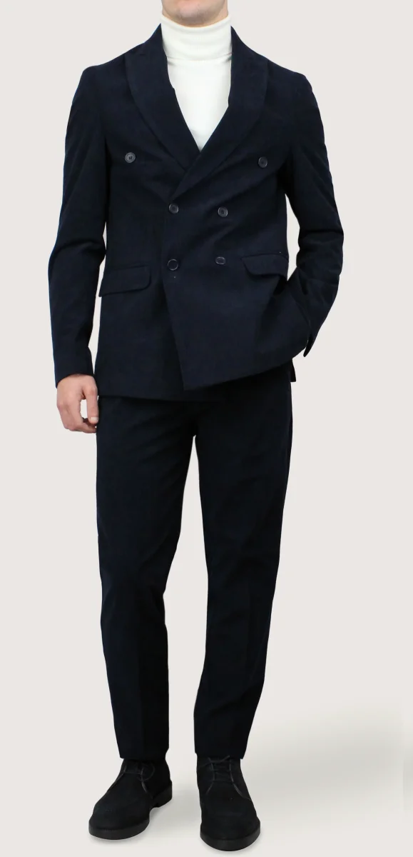 Questo sofisticato abito doppiopetto in velluto a coste รจ un must-have per ogni guardaroba. Realizzato con tessuto di alta qualitร , offre uno stile elegante e allo stesso tempo confortevole. Perfetto per ogni occasione, รจ un capo versatile che si adatta ad ogni tipologia di fisico.
