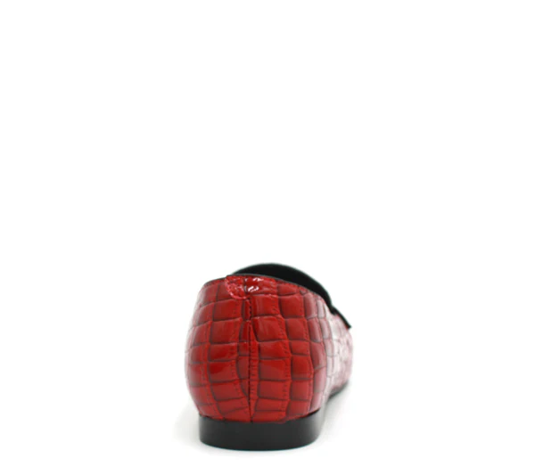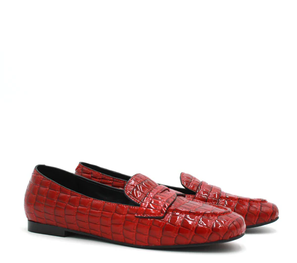 Un mocassino in vernice stampa cocco rosso. Molto soft.