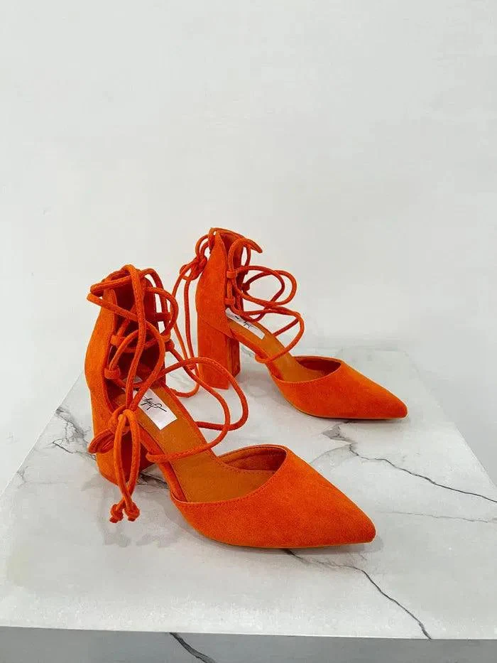 Le décolleté Alise in camoscio con lacci alla caviglia sono la quintessenza dell’eleganza e del fascino.