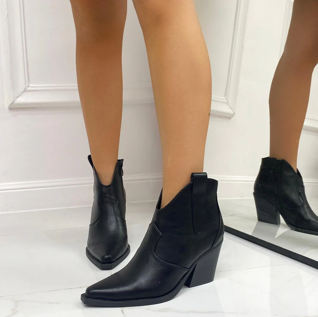 Allison – Stivale Donna Basso Texani Tacco Punta Nero
