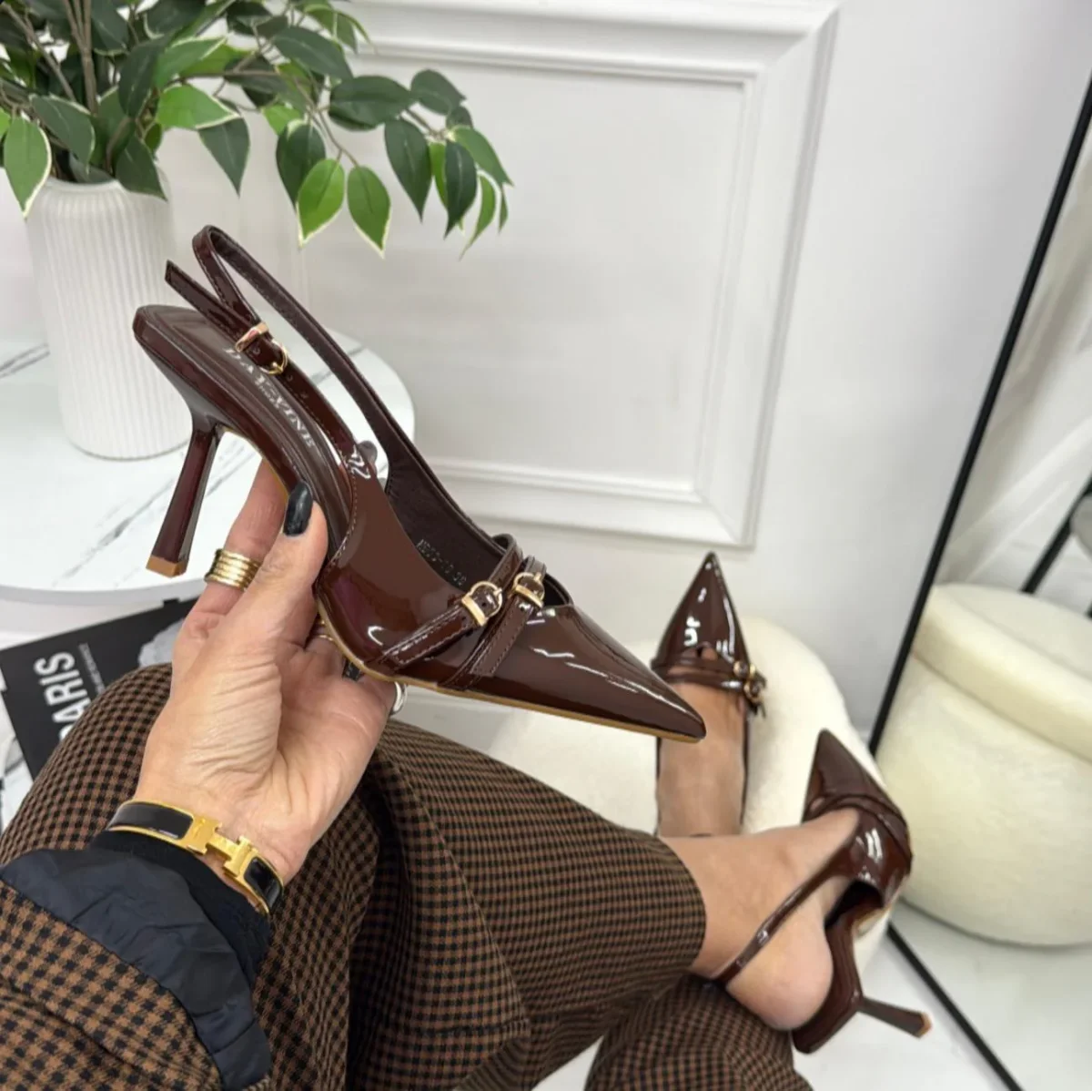 Alyson – Décolleté a Punta con Cinturino alla Caviglia Marrone
