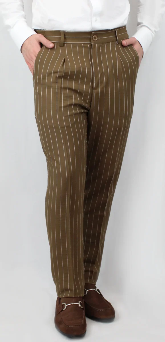 Il pantalone Amalfi Gessato รจ un capo sartoriale in misto lino leggerissimo, ideale per abbinarsi alla giacca elegante e conferire un tocco di modernitร al tuo look. Il tessuto di alta qualitร garantisce una vestibilitร impeccabile, mentre la leggerezza del lino ti permette di sfoggiare uno stile elegante e confortevole. Perfetto per ogni occasione.