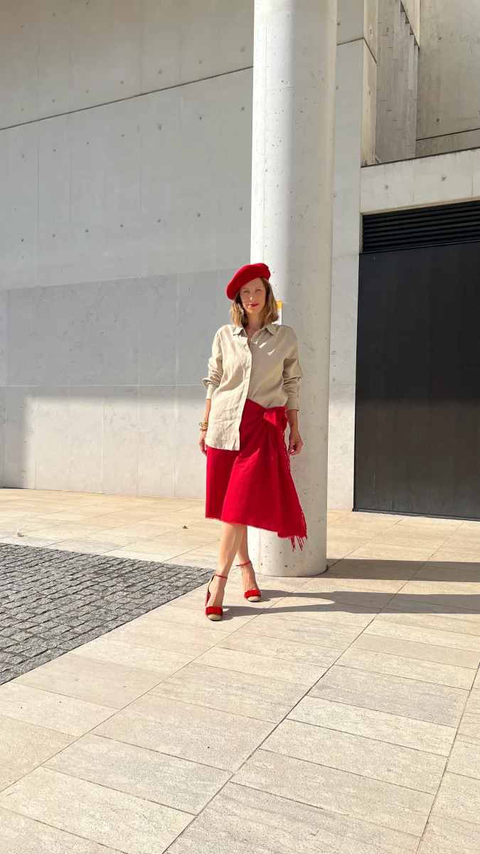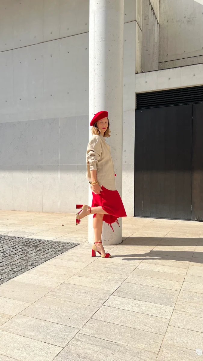 Quel tocco di rosso, necessario. Modesta e perfetta per essere indossata in ogni occasione, dall’ufficio al tempo libero.