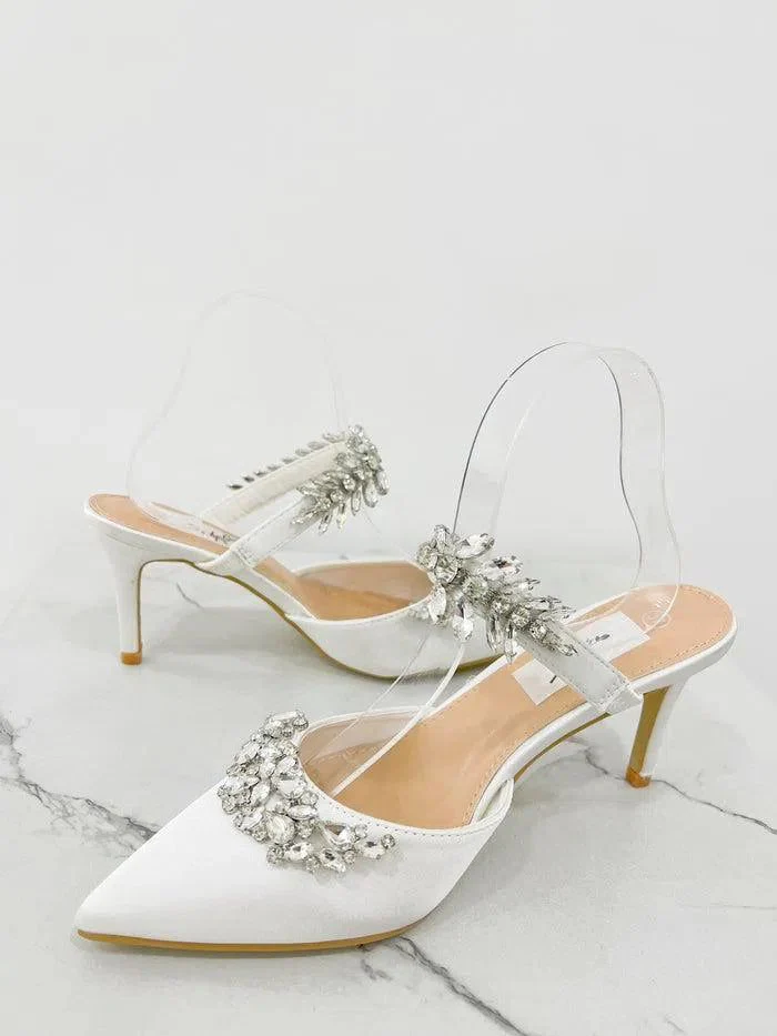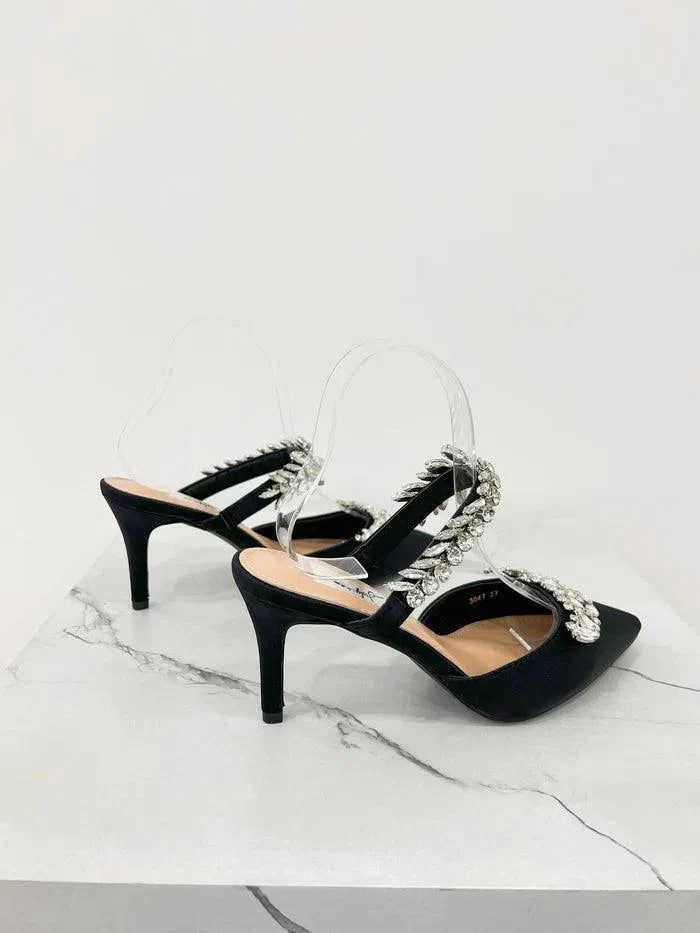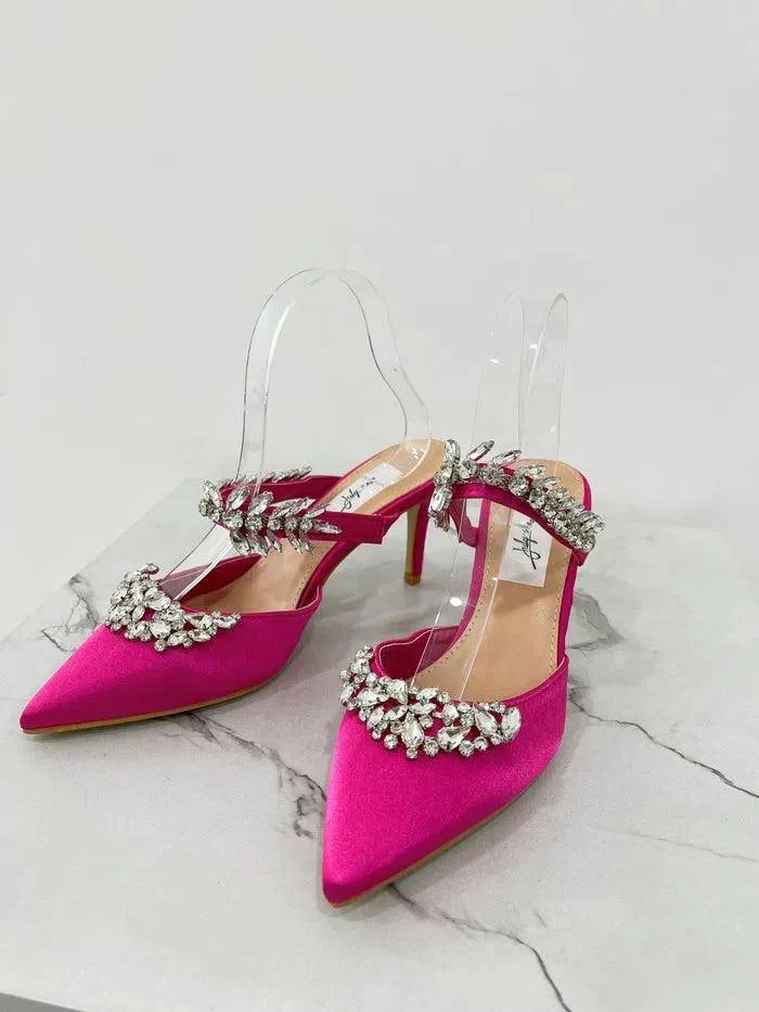 I tacchi ARENA-Decolletè con decorazione gioiello sono realizzati in elegante raso, con un altezza tacco di 8 cm ed una altezza plateau di 0,5 cm. Presentano una vestibilità CALZATA PICCOLO e consigliamo di acquistare un numero più grande per una calzatura ottimale. N.B.: per questo prodotto in saldi non è disponibile il cambio numero gratuito.