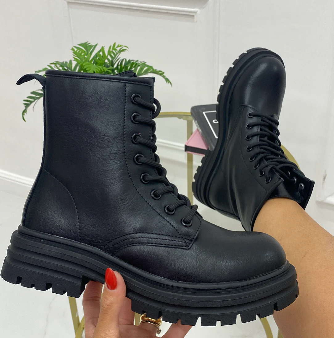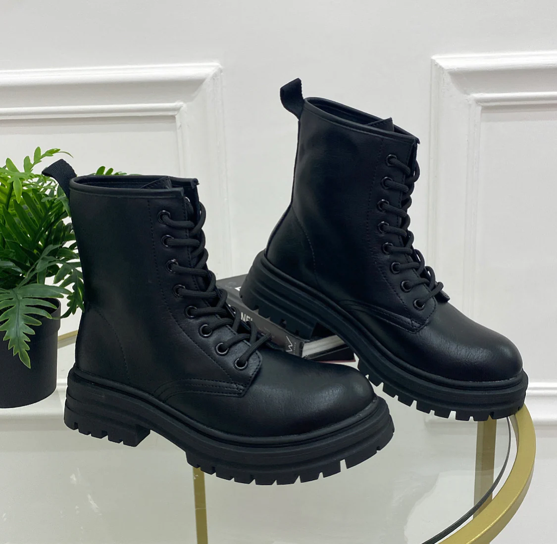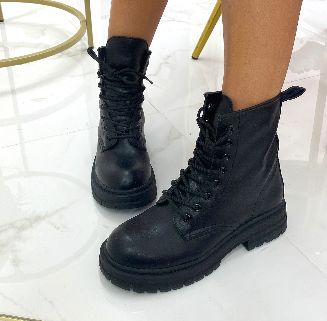 Aria – Stivaletti Bassi Anfibi Lacci Casual Comodo Nero