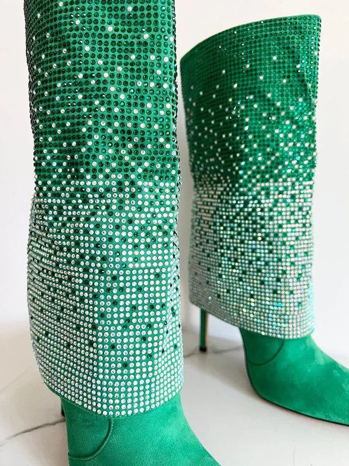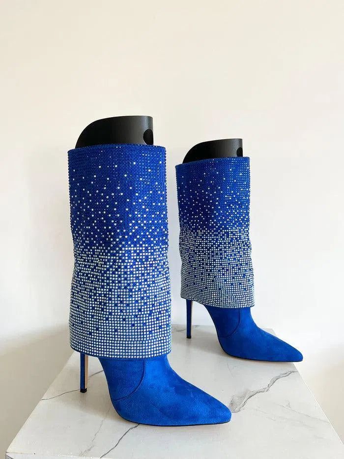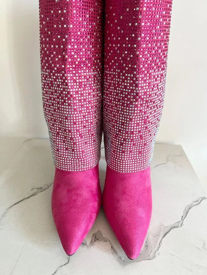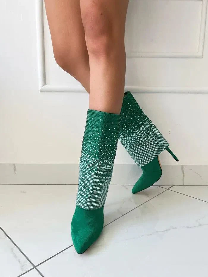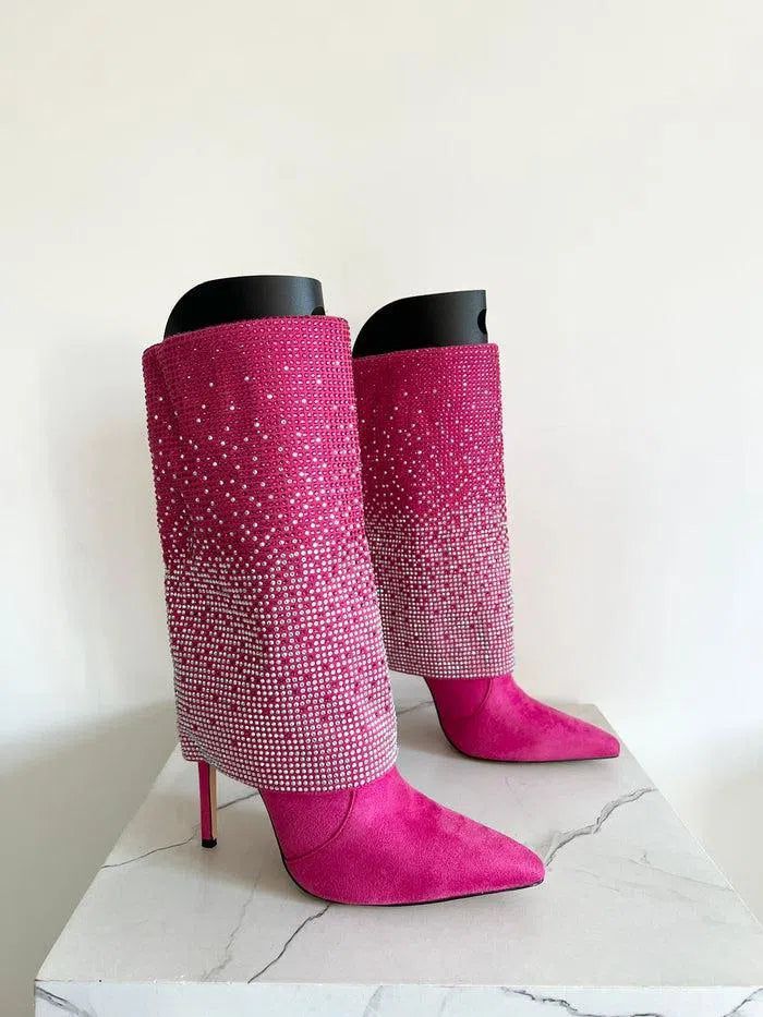 eco-camoscio, presenta un’altezza del tacco di 11,5cm, un’altezza dello stivale di 24cm, e una circonferenza del gambale tra 36-38cm. L’altezza del plateau รจ di soli 1cm, per offrirti un comfort ottimale e una vestibilitร  regolare. La tomaia รจ impreziosita da strass luminosi, che contribuiscono ad un design elegante e moderno.