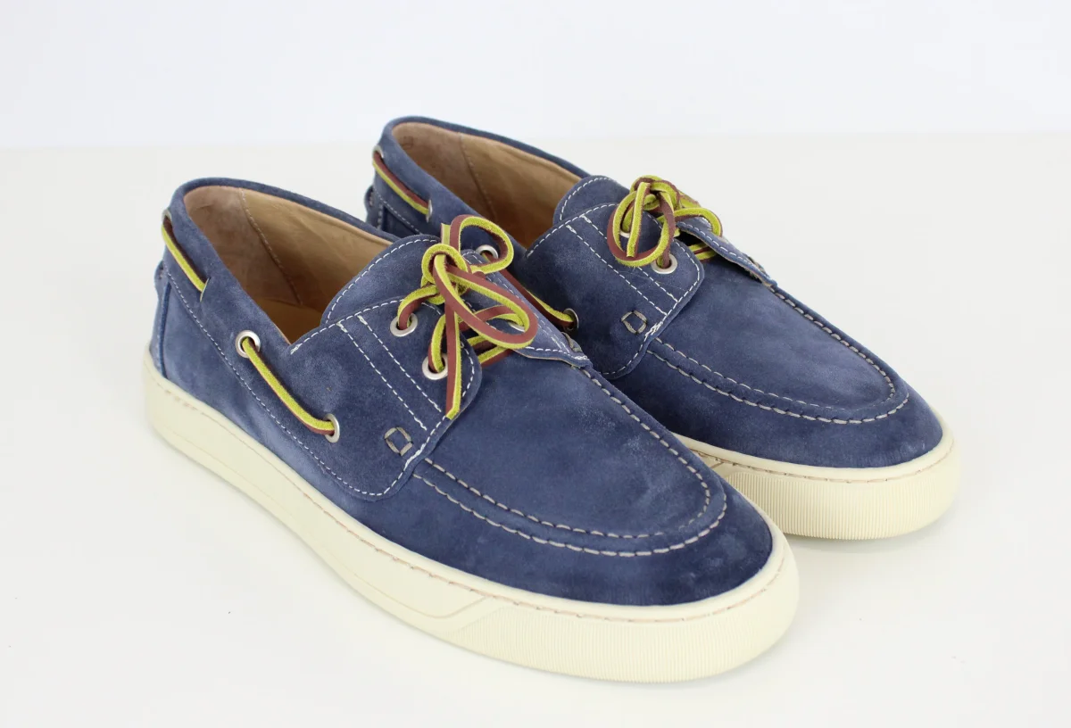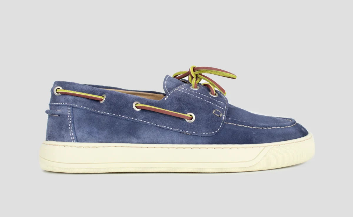 Esplora lo stile marinaresco con le nostre Barca Jeans. Realizzate con vera pelle scamosciata, queste classiche scarpe da barca color jeans sono il perfetto connubio di artigianalitร e fresca eleganza estiva. Porta la tua moda a un nuovo livello con Barca Jeans.