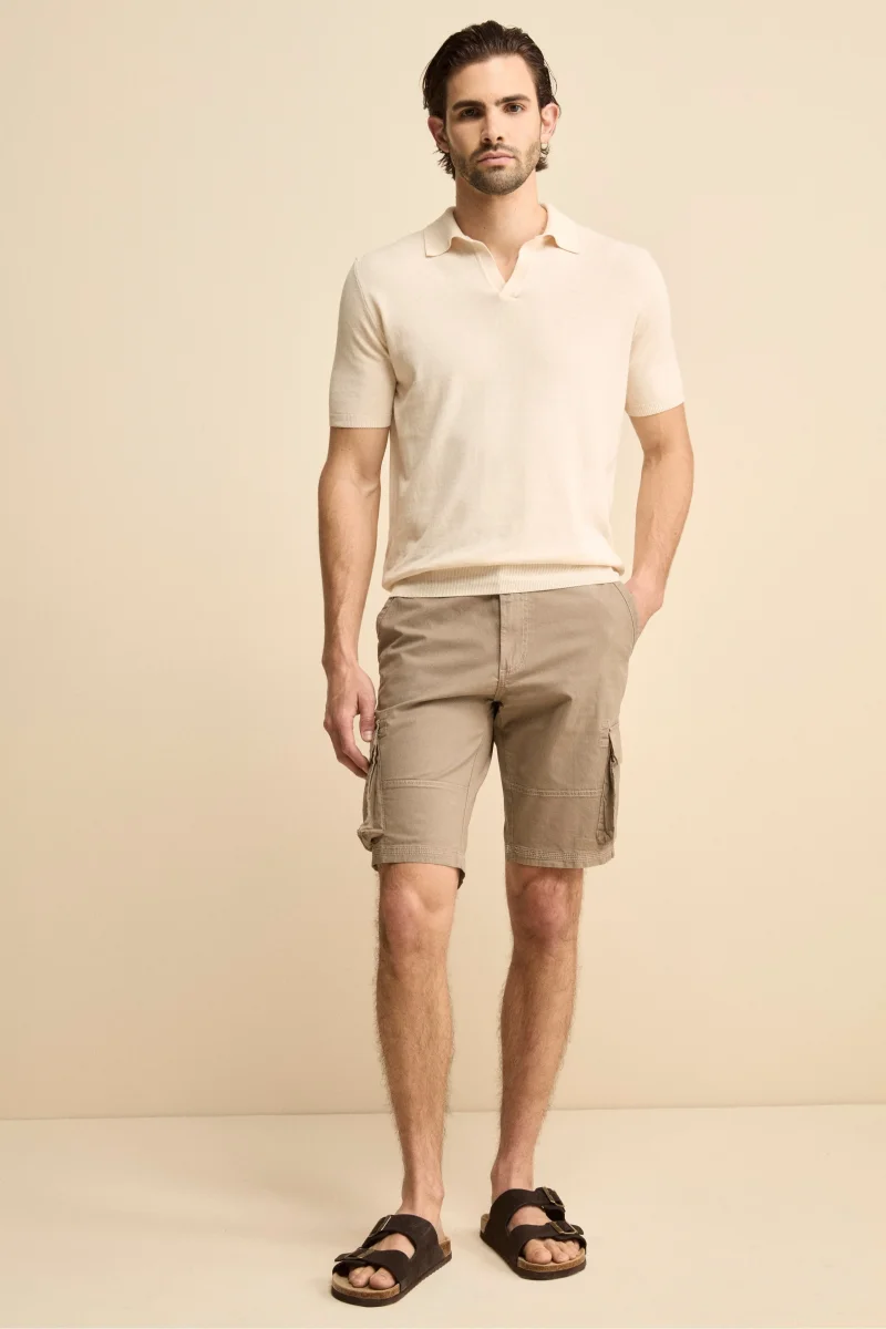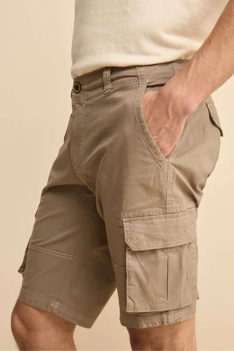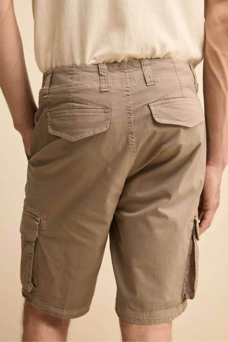 Versatili ed essenziali, questi Bermuda Cargo in Cotone Canetté sono pensati per accompagnare con stile la stagione primavera estate. Realizzati in misto cotone stretch Canetté, offrono comfort, traspirabilità e massima libertà di movimento, grazie alla trama strutturata del tessuto e alla componente elastica. Il design si distingue per i tasconi applicati laterali, modello cargo, tasche america, tasche posteriori con pattina, passanti per cintura e chiusura frontale con bottone. La vestibilità regolare li rende ideali per un look casual funzionale, senza rinunciare all’eleganza informale. Parte della collezione IL Lanificio, sono perfetti con una T-shirt in jersey, una camicia in lino o una polo in maglia. Questi bermuda uomo rappresentano un capo pratico ma curato, da indossare in città o in vacanza. Il modello è alto 189 cm e indossa la taglia 50.