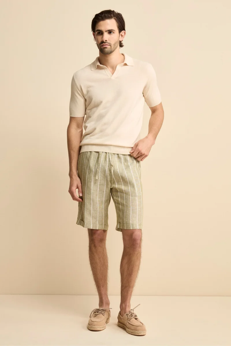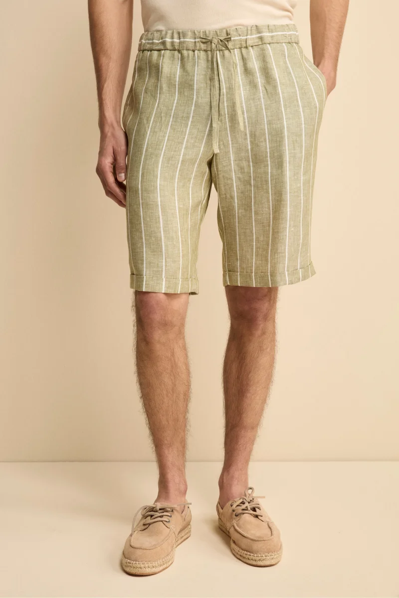 Bermuda in Lino con Coulisse – VERDE RIGATO