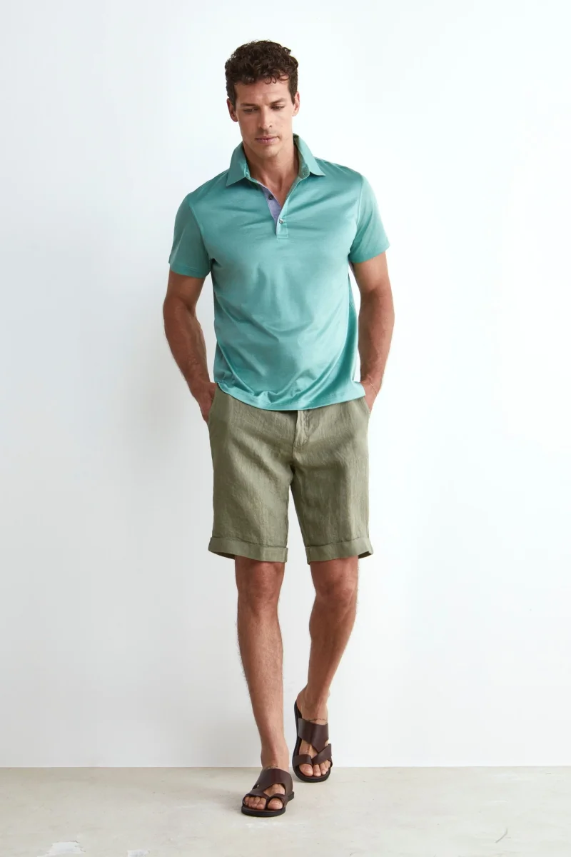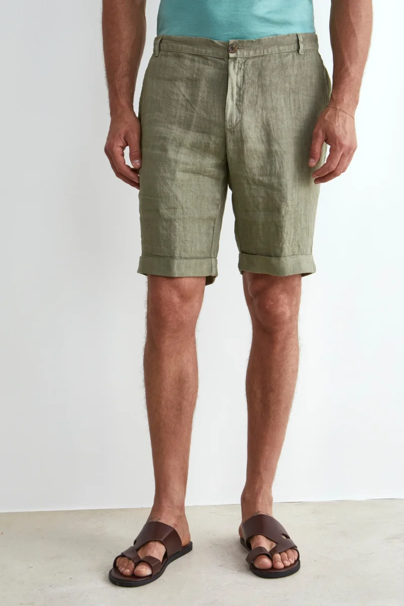 Bermuda in Lino con Risvolto – VERDE MILITARE