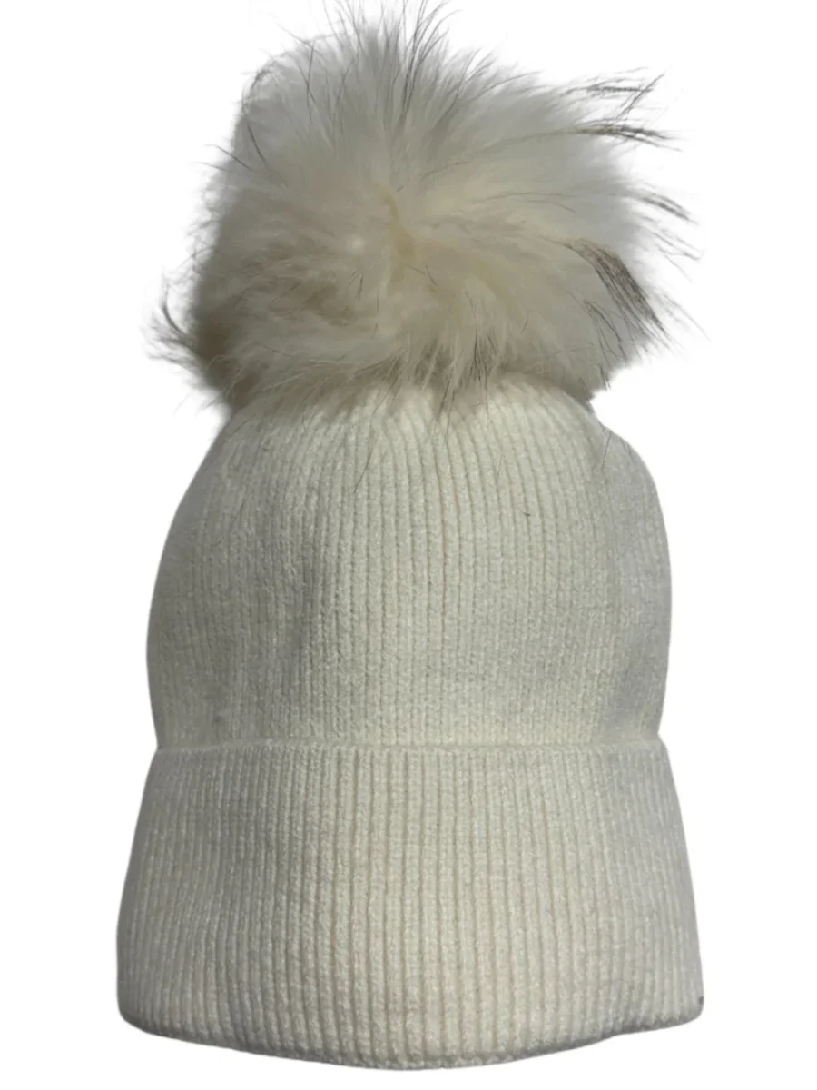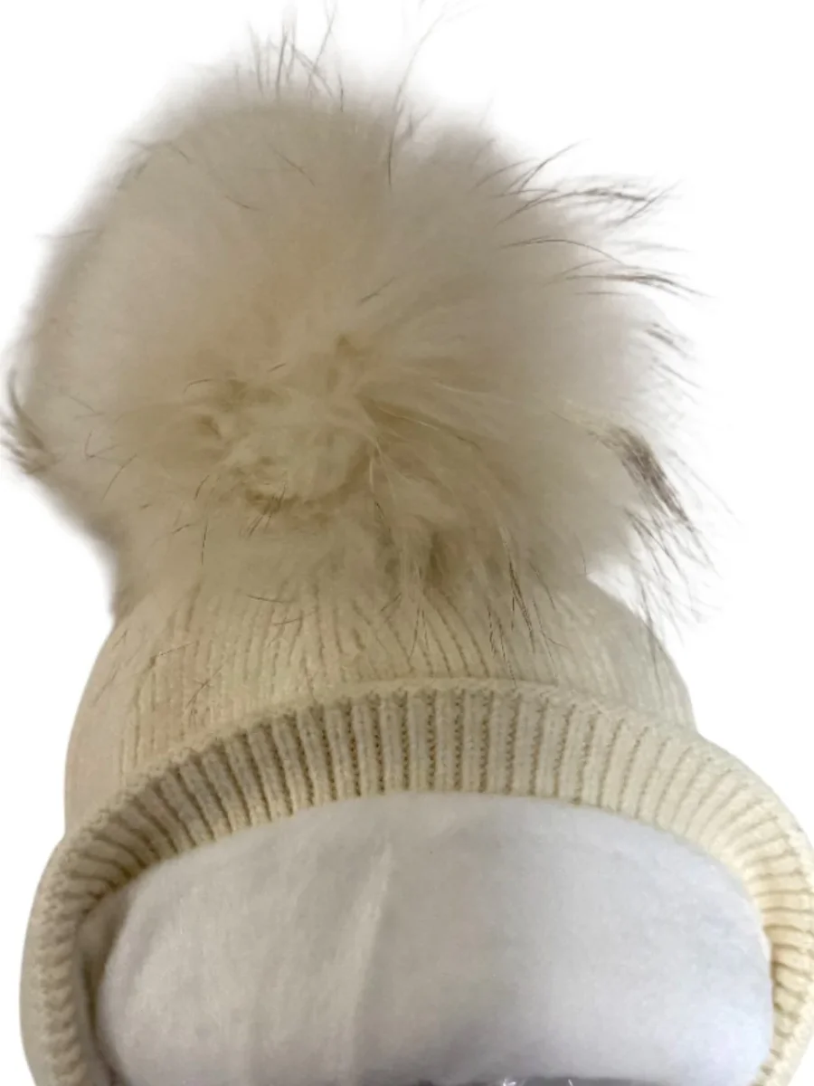 Berretto in lana con pon pon in murmasky 100% Made in Italy Colore: panna