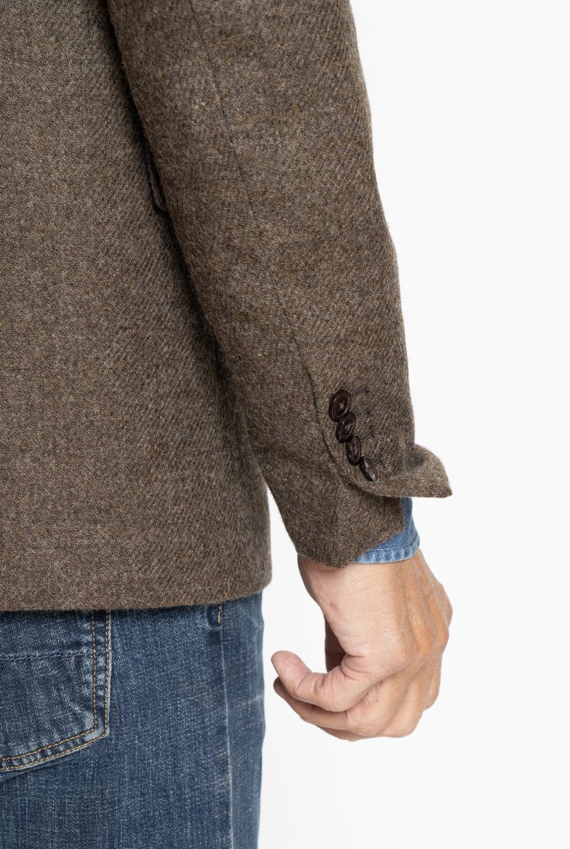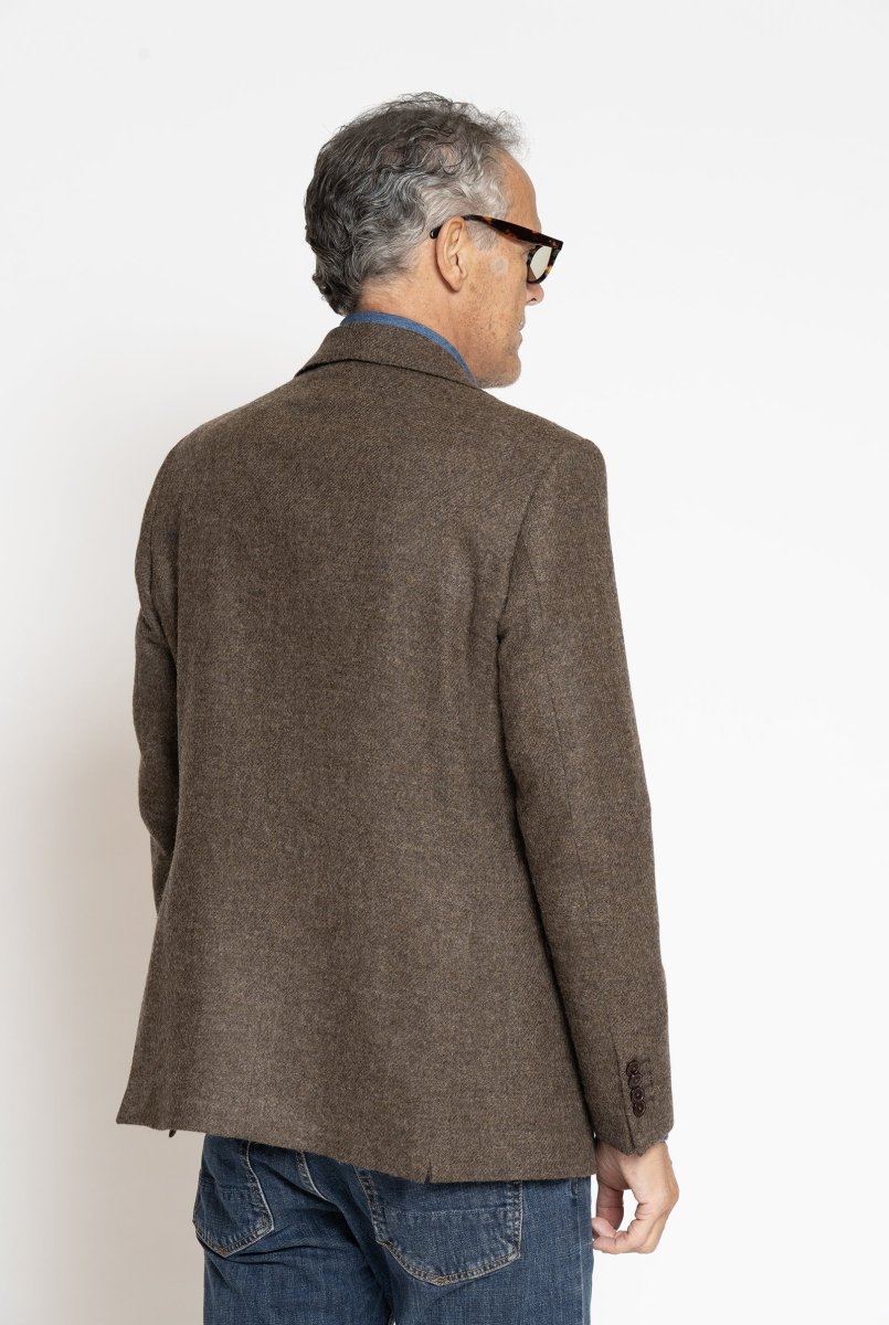 Blazer in Tessuto Harris Tweed Monopetto Marrone