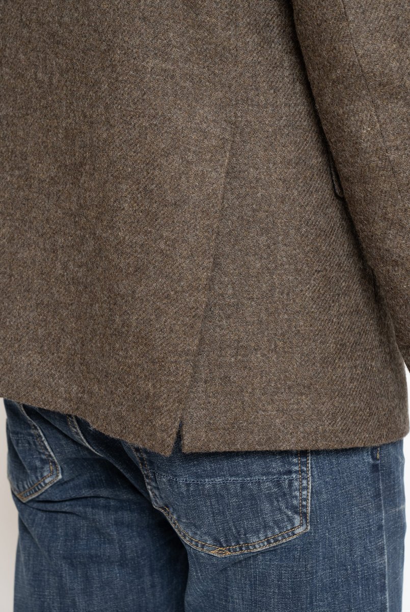 La giacca in tessuto 100% Harris Tweed รจ un capo di alta qualitร , interamente Made in Italy, che combina eleganza e artigianalitร . Foderata internamente per garantire comfort e calore, questa giacca presenta un classico rever e spacchetti laterali posteriori che offrono una vestibilitร dinamica e sofisticata. Le due tasche frontali con pattina aggiungono un tocco di praticitร , mentre la tasca sul petto รจ ideale per riporre un fazzoletto, completando cosรฌ un look impeccabile. All’interno, sono presenti tasche porta documenti, perfette per organizzare gli oggetti essenziali. Ogni dettaglio di questa giacca riflette la tradizione e l’eccellenza dell’artigianato italiano, rendendola una scelta perfetta per chi cerca stile e funzionalitร .