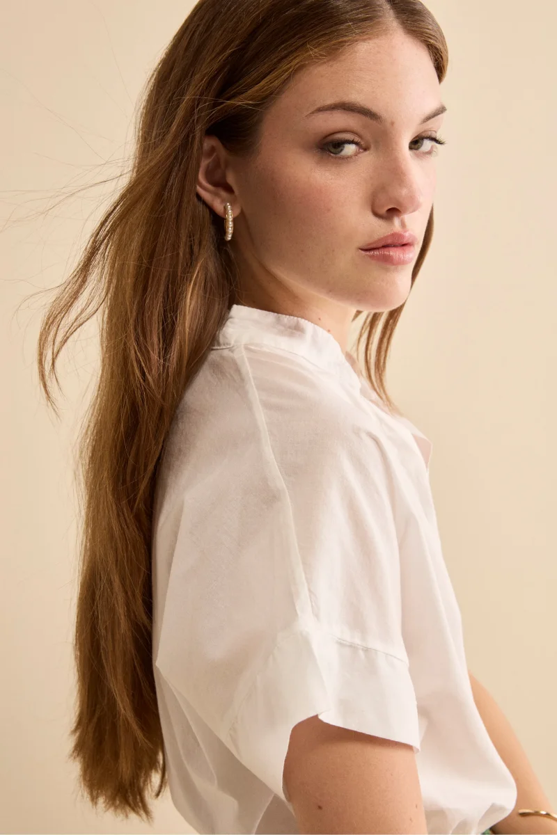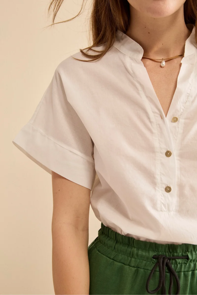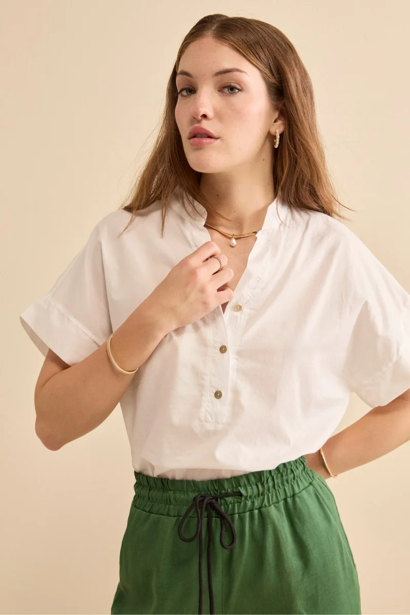 Blusa Boxy in Cotone con Bottoni – PANNA