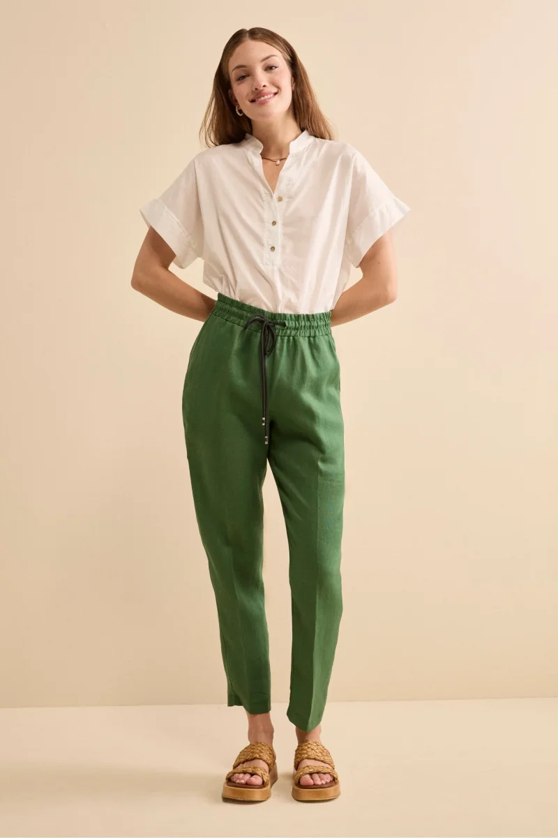 Blusa Morbida Girocollo in Lino – AZZURRO