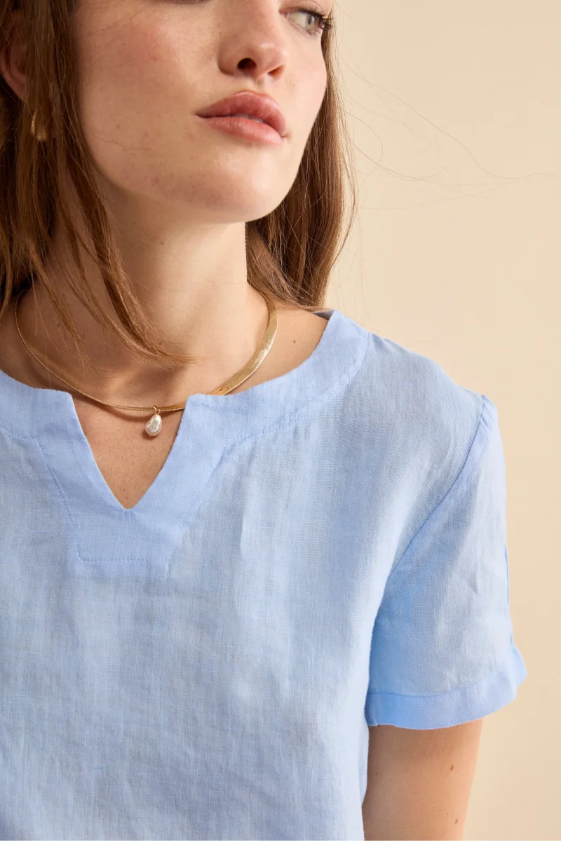 Blusa Morbida Girocollo in Lino – AZZURRO