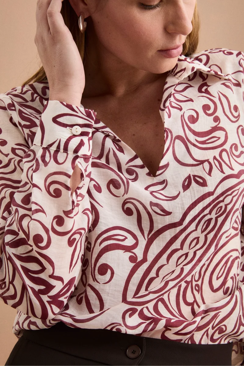 Blusa Over con Scollo a V in Fantasia Jacquard – FANT. BORDEAUX