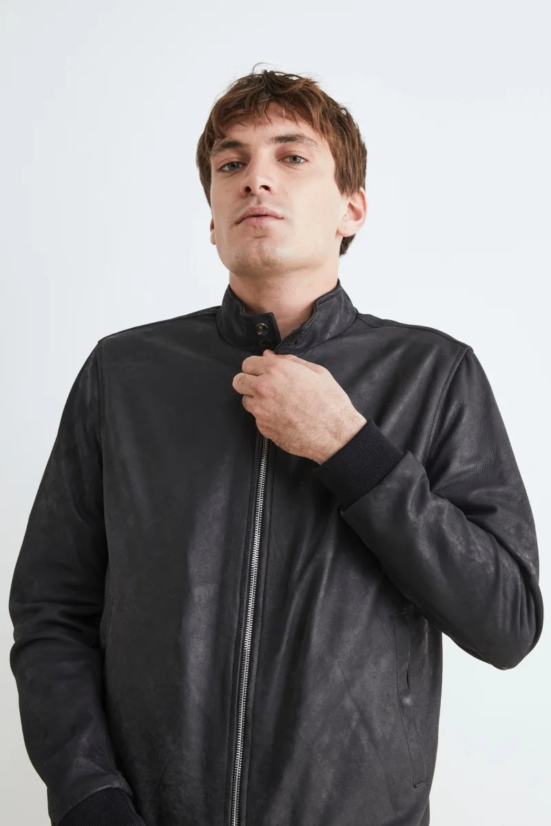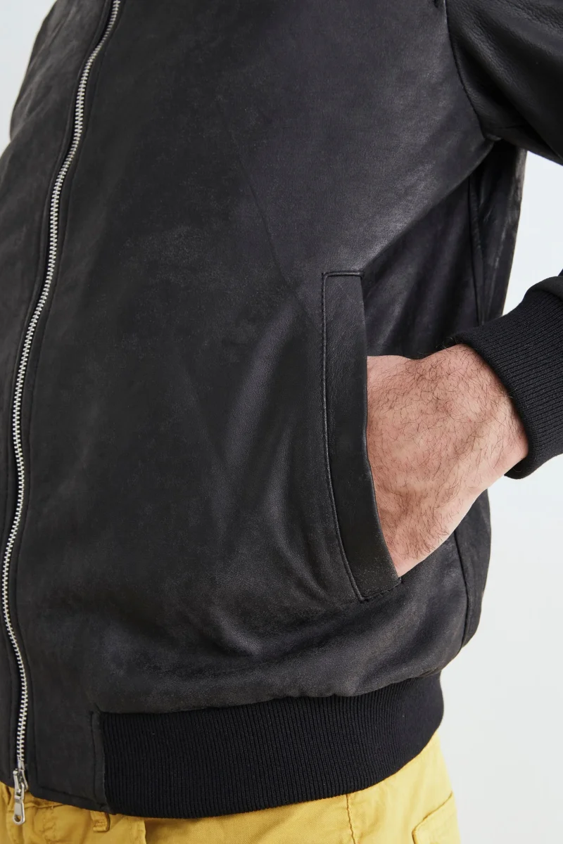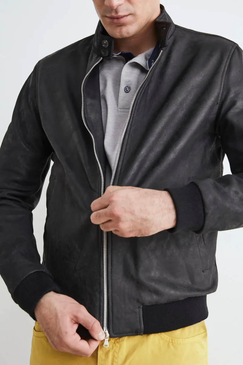 Bomber di pelle uomo – NERO