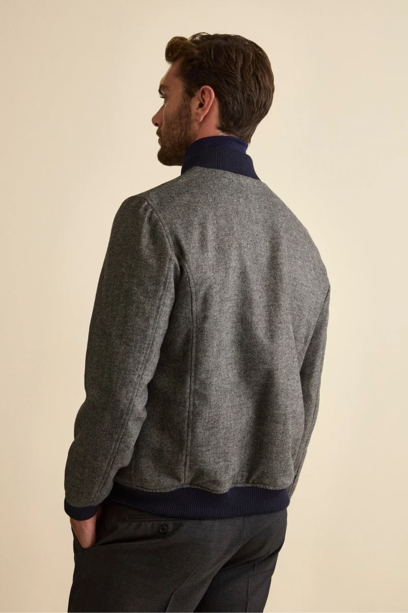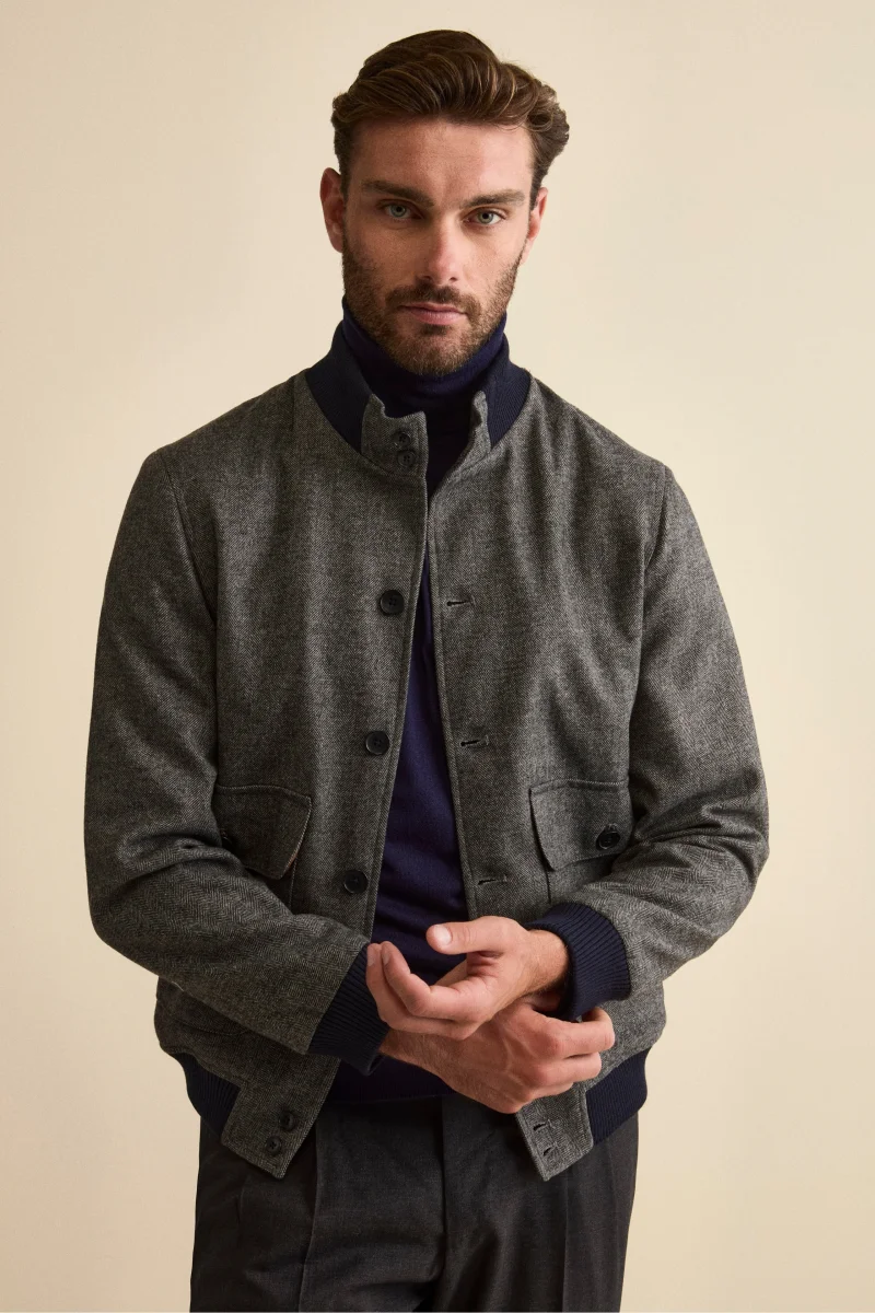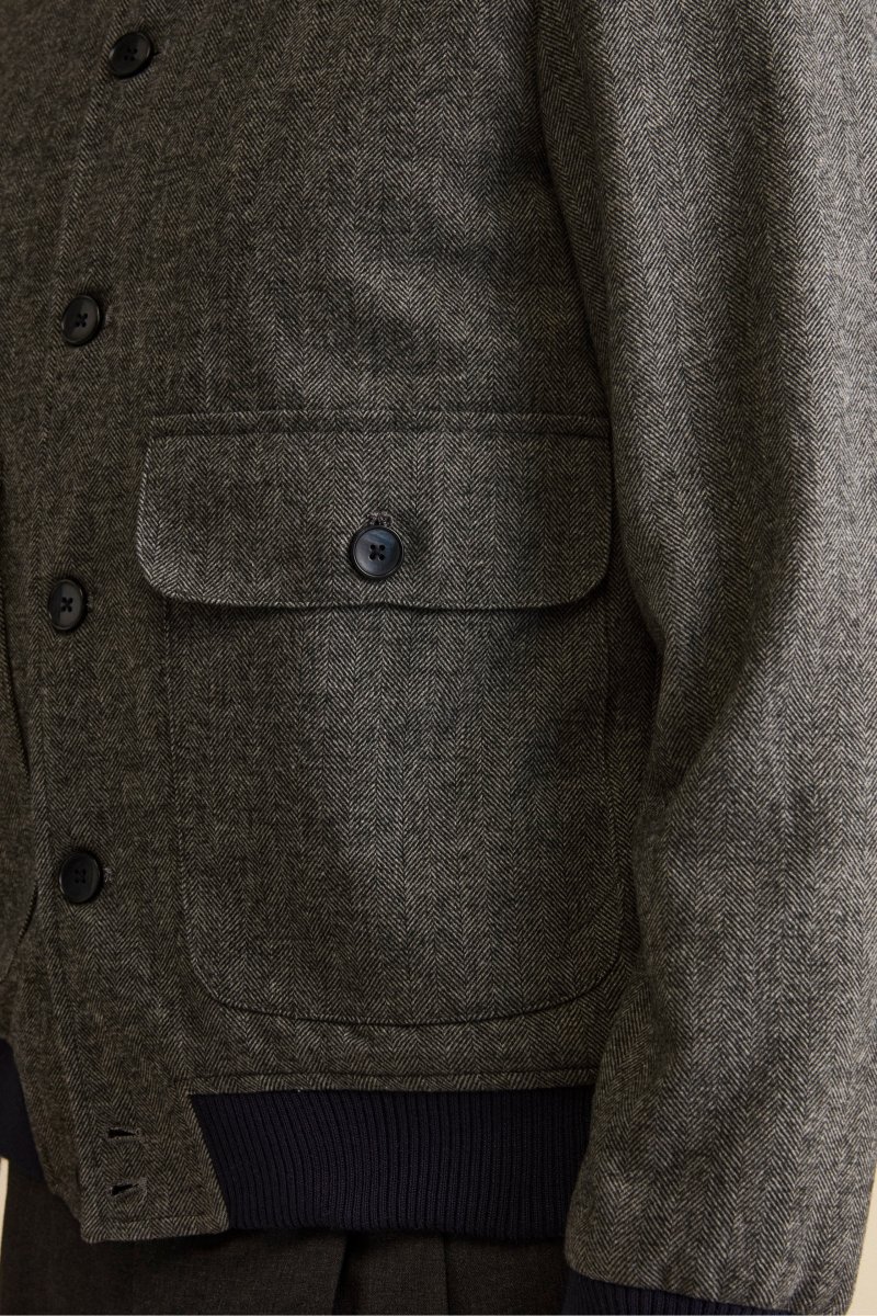 Bomber Spigato con Tasche in Misto Lana – GRIGIO SPIGATO