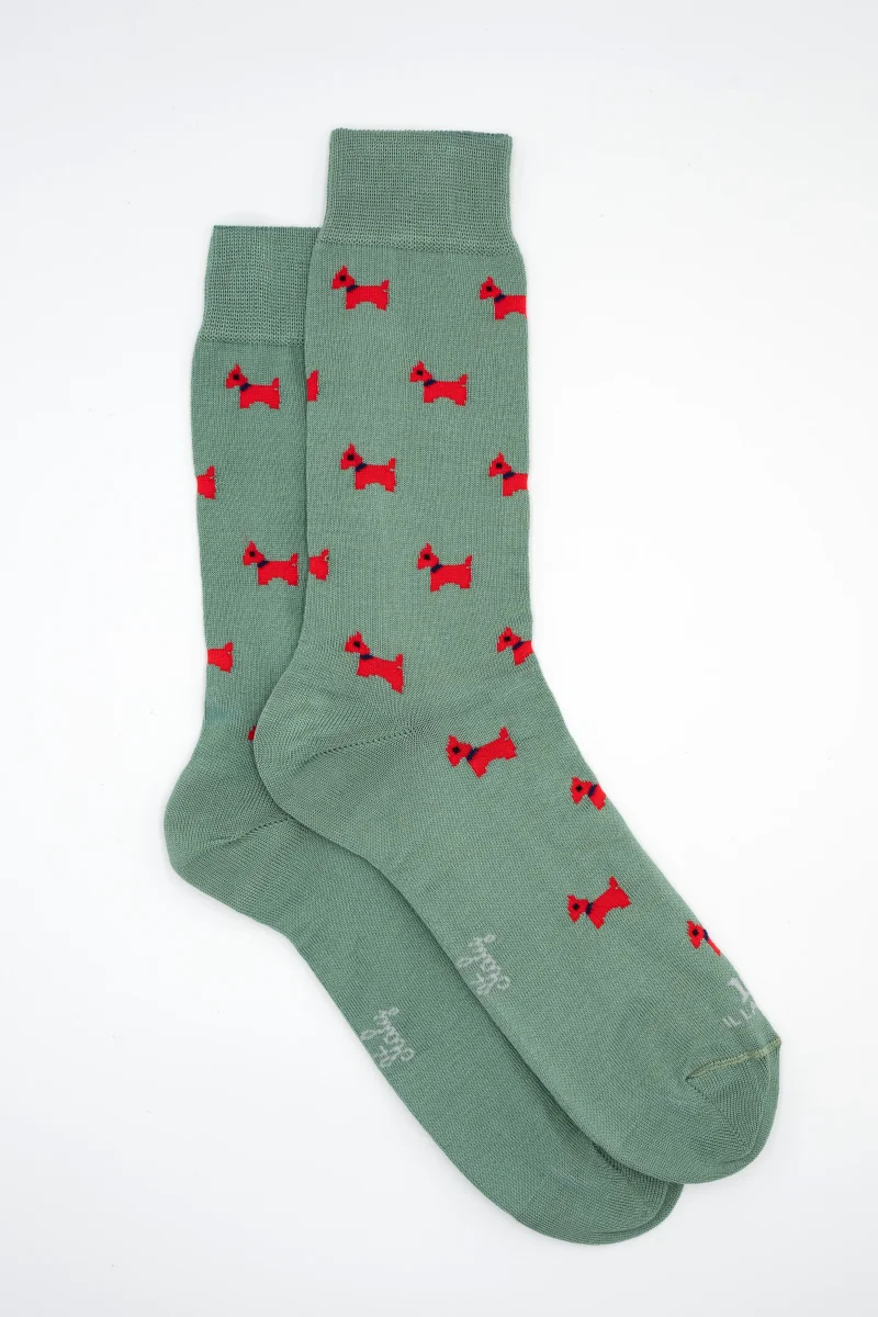Calze Corte in Cotone Fantasia Cani – VERDE/ROSSO