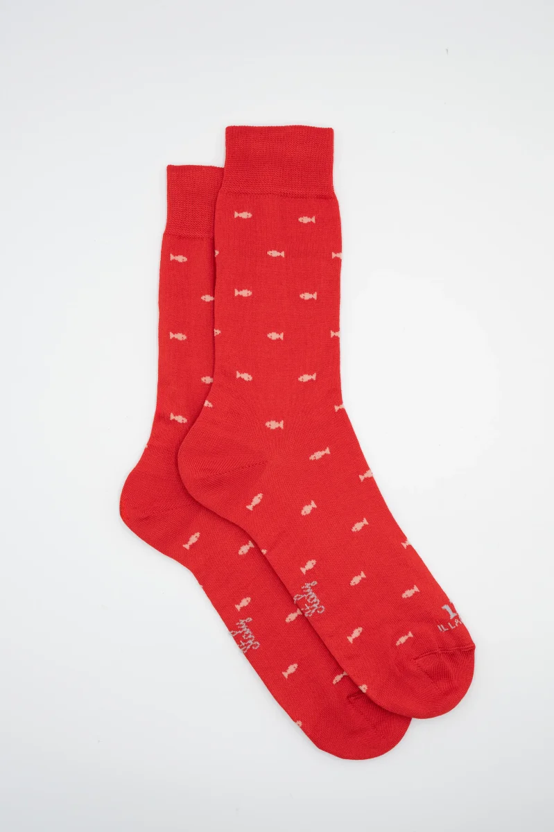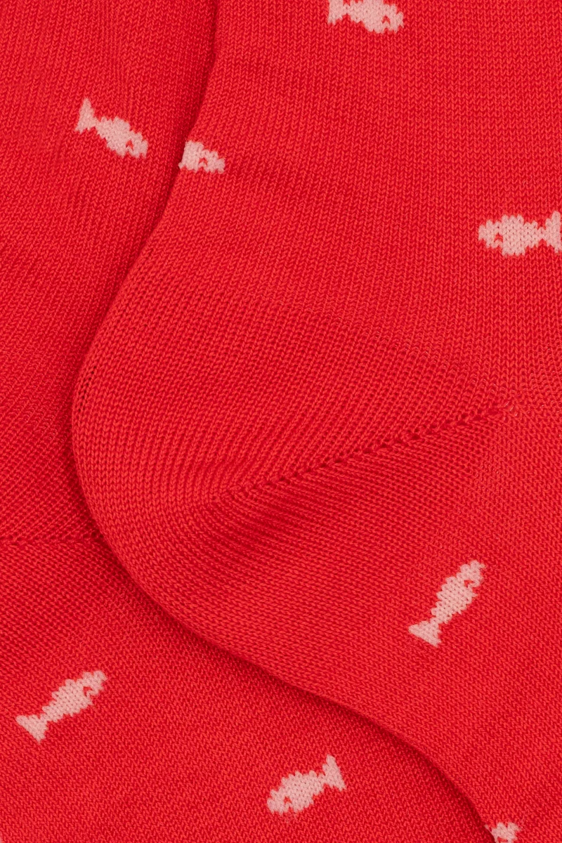 Calze Corte in Cotone Fantasia Pesci – ROSSO/ROSA