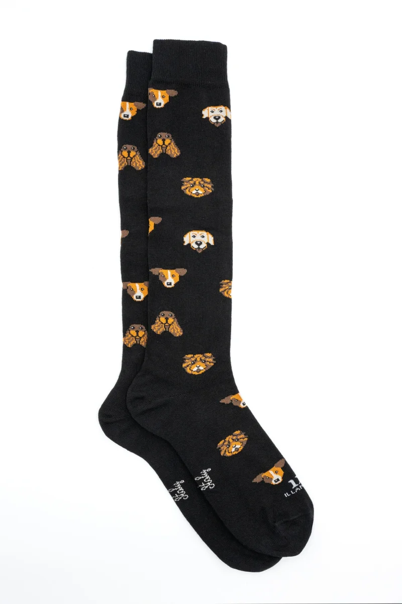 Calze Lunghe in Cotone Fantasia Cani – NERO