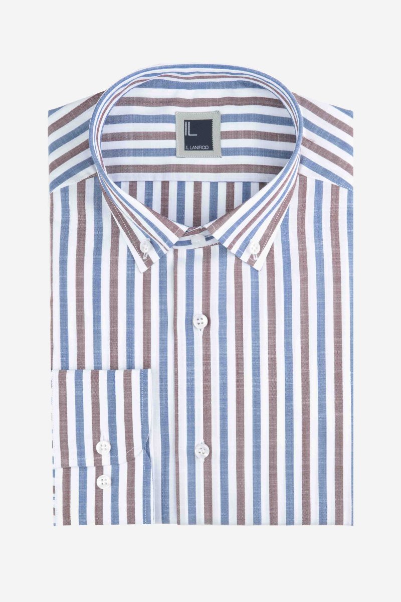Camicia a righe button down – RIGATO BLU/MARRONE