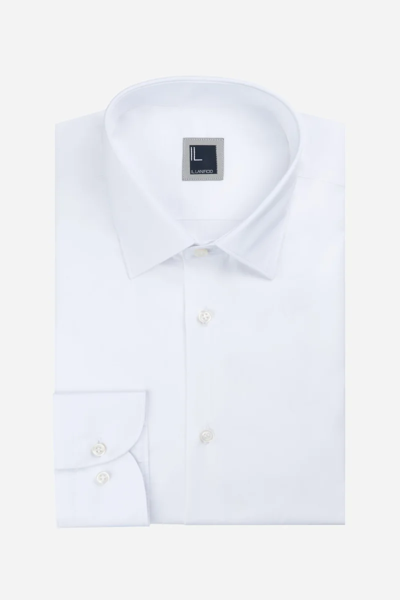 Aggiungi un tocco di classe al tuo stile con questa elegante camicia bianca realizzata con il morbido cotone del cotonificio Albini. Completa il look con un completo elegante Il Lanificio per le occasioni speciali o un denim per un look piรน casual. Made in Italy.