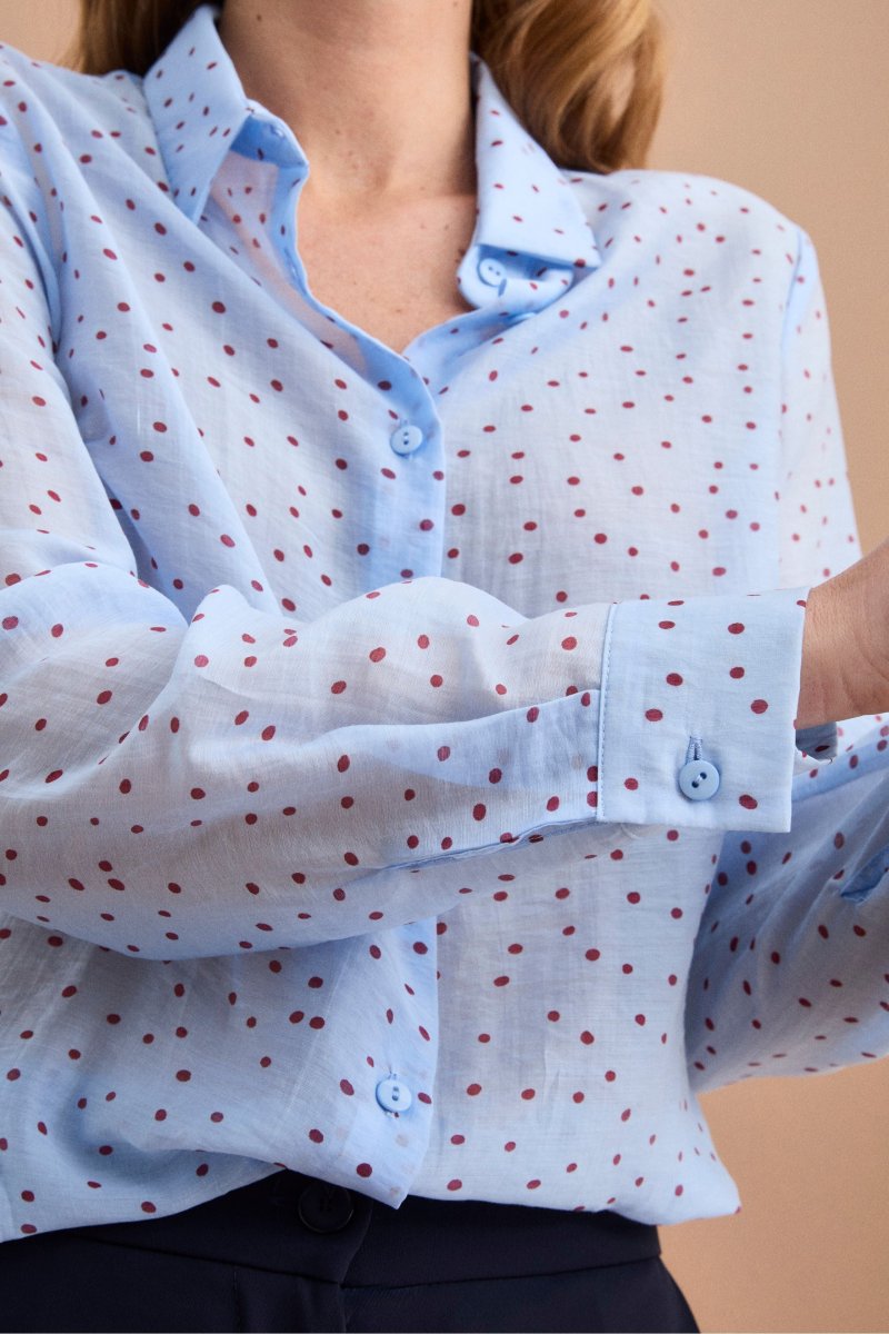 Camicia boxy da donna a pois, un capo che interpreta lโeleganza contemporanea con una linea morbida e proporzioni moderne. Realizzata in tessuto leggero e fluido, si distingue per il taglio boxy con vestibilitร morbida che cade con naturalezza sul busto, offrendo comfort e movimento. Il colletto classico e la chiusura frontale con bottoni definiscono unโestetica raffinata, mentre le maniche lunghe con polsini chiusi da bottone completano il design con equilibrio sartoriale. Parte della collezione Il Lanificio e interamente Made in Italy, รจ perfetta da abbinare a pantaloni a palazzo o gonne midi per un look femminile sofisticato, oppure a denim e blazer per uno stile casual chic dal carattere distintivo. La modella รจ alta 178 cm e indossa la taglia 42.