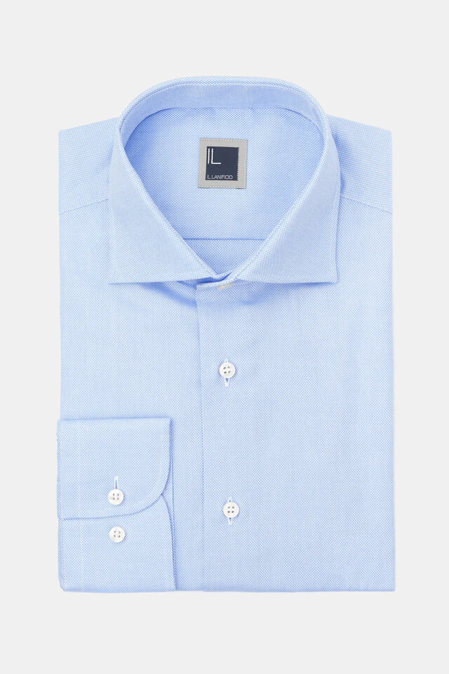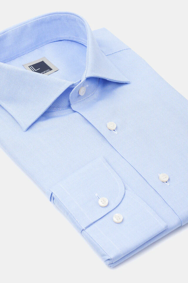 Camicia in cotone tinto in filo armaturato giro inglese, collo francese vestibilità regolare. Le stecche estraibili, l’attaccatura delle maniche all’inglese, i bottoni cuciti con punto annodato per una perfetta tenuta, le cuciture con 7 punti al cm danno alle nostre camicie quel tocco sartoriale in più che le rendono uniche. Il modello è alto 189 cm e indossa la taglia 40.